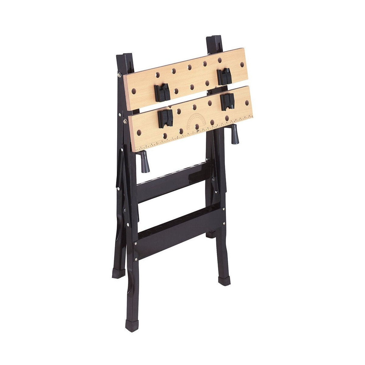 4 mors en PVC Porte-outils Traverses horizontales Hauteur de travail : 78,5 cm Longueur du plan de travail : 60,5 cm Largeur du plan de travail min. : 23,5 cm max. : 35 cm Espace de serrage max. 26 cm Charge max. 50 Kg Poids 7,2 Kg