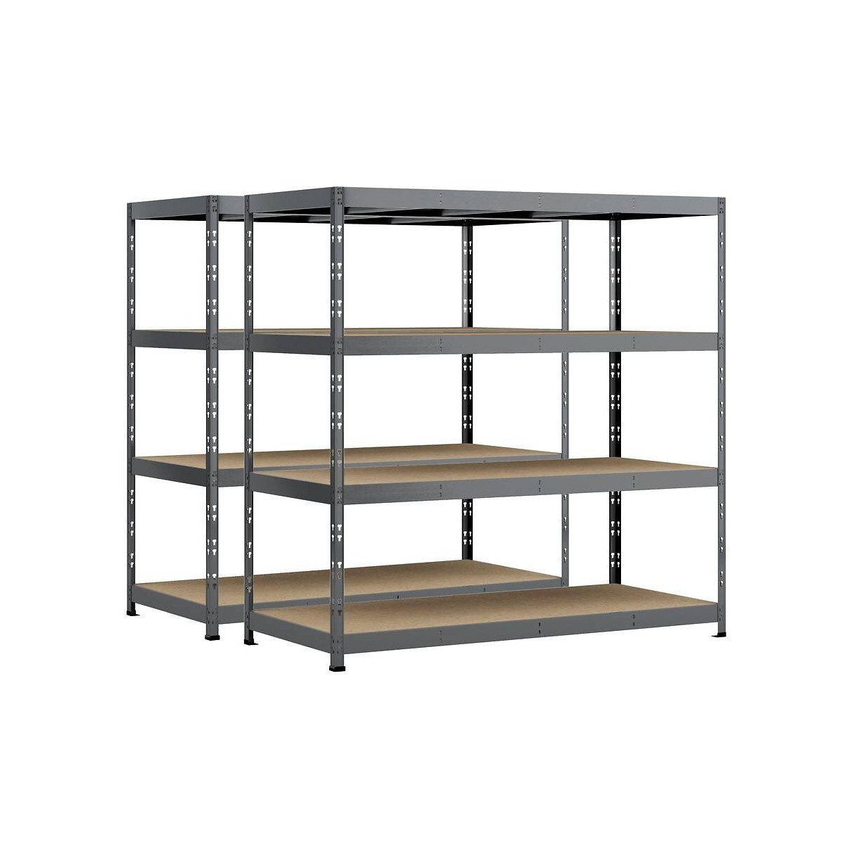 Lot de 2 étagères Rack MODULOSTORAGE charge très lourd, très grande profondeur. Les + du produit Idéal pour optimiser l'espace au mur sur de grandes surfaces, Très fonctionnelle, elle permet d'optimiser le rangement de produits lourds ou encombrants, Modulable en hauteur grâce à ses plateaux amovibles, Enorme capacité de charge de 4800 kg, répartie jusqu'à 600 kg par plateau, Grande résistance dans les endroits humides, grâce à sa structure en acier protégée par une peinture époxy gris foncé. Montage rapide, sans vis ni boulon grâce à sa conception innovante. Caractéristiques techniques (unitaire) Dimensions : 200 x 80 x H 200 cm Nombre de plateaux : 4, épaisseur 8mm Matière plateaux : Aggloméré Capacité de charge : 600 kg/plateau Matière structure : Acier, finition époxy Montage : clipsage (fixation au mur recommandée) Coloris : gris foncé/bois Garantie 5 ans