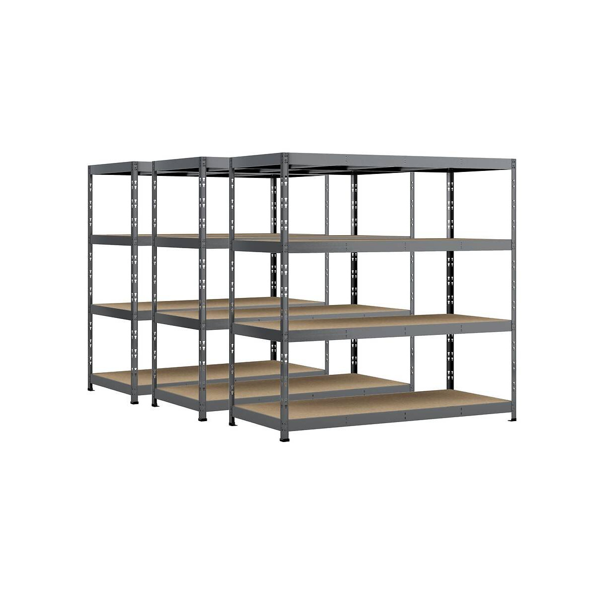 Lot de 3 étagères Rack MODULOSTORAGE charge très lourd, très grande profondeur. Les + du produit Idéal pour optimiser l'espace au mur sur de grandes surfaces, Très fonctionnelle, elle permet d'optimiser le rangement de produits lourds ou encombrants, Modulable en hauteur grâce à ses plateaux amovibles, Enorme capacité de charge de 7200 kg, répartie jusqu'à 600 kg par plateau, Grande résistance dans les endroits humides, grâce à sa structure en acier protégée par une peinture époxy gris foncé. Montage rapide, sans vis ni boulon grâce à sa conception innovante. Caractéristiques techniques (unitaire) Dimensions : 200 x 80 x H 200 cm Nombre de plateaux : 4, épaisseur 8mm Matière plateaux : Aggloméré Capacité de charge : 600 kg/plateau Matière structure : Acier, finition époxy Montage : clipsage (fixation au mur recommandée) Coloris : gris foncé/bois Garantie 5 ans