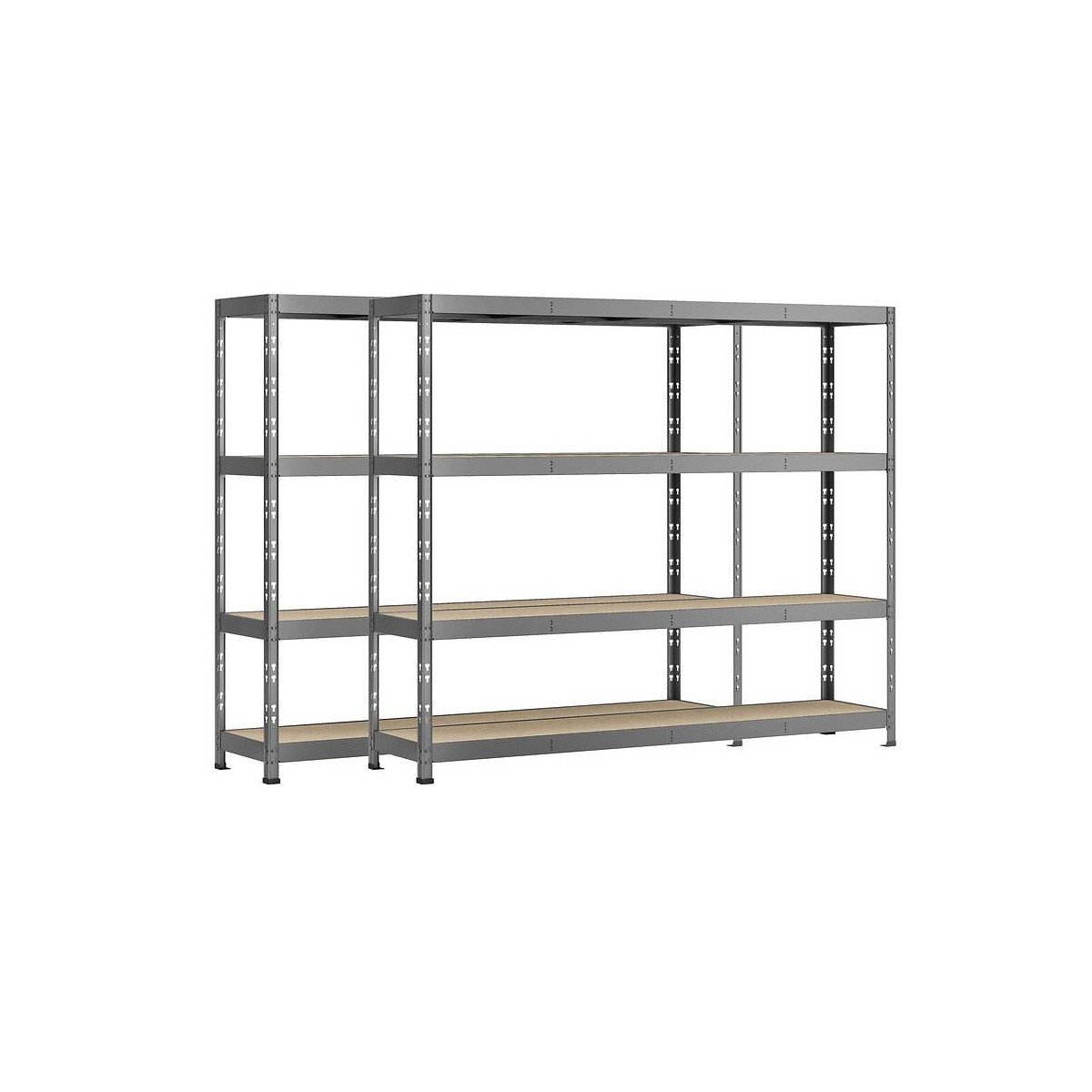Lot de 2 étagères Rack MODULOSTORAGE de 220 cm de long. Les + du produit Idéal pour optimiser l'espace au mur sur de grandes surfaces, Très fonctionnelle, elle permet d'optimiser le rangement de produits lourds ou encombrants, Modulable en hauteur grâce à ses plateaux amovibles, Enorme capacité de charge de 2400 kg, répartie jusqu'à 300 kg par plateau, Grande résistance dans les endroits humides, grâce à sa structure en acier protégée par une peinture époxy gris foncé. Montage rapide, sans vis ni boulon grâce à sa conception innovante. Caractéristiques techniques (unitaire) Dimensions : 220 x 60 x H 185 cm Nombre de plateaux : 4, épaisseur 8mm Matière plateaux : Aggloméré Capacité de charge : 300 kg/plateau Matière structure : Acier, finition époxy Montage : clipsage (fixation au mur recommandée) Coloris : gris foncé/bois Garantie 5 ans
