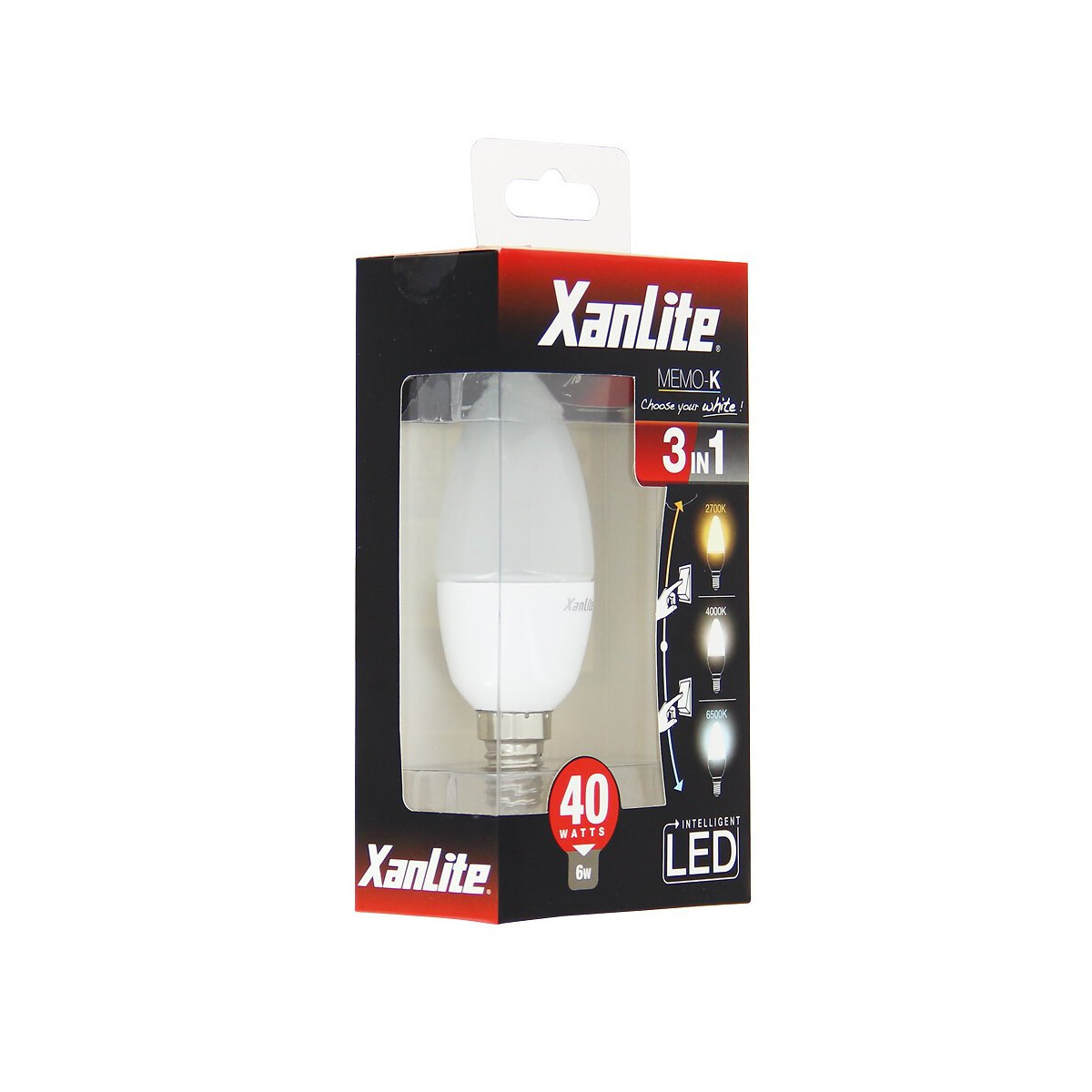 Ampoule led flamme. Culot E14. Consommation 6W équivalent 40W, 470 lumens. Température de couleur : Blanc chaud variable, 2700 à 6000 kelvins. Angle 200°. Classe énergétique : A+.<\BR>Températures de couleur différentes (3 en 1)