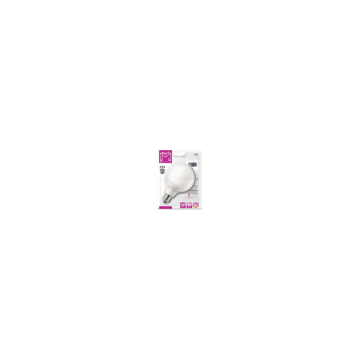 Ampoule LED Globe équivalente à une lampe à incandescence 60W, culot E27, lumière chaude de 2700K. Non compatible avec un variateur de lumière.Spécifications techniques