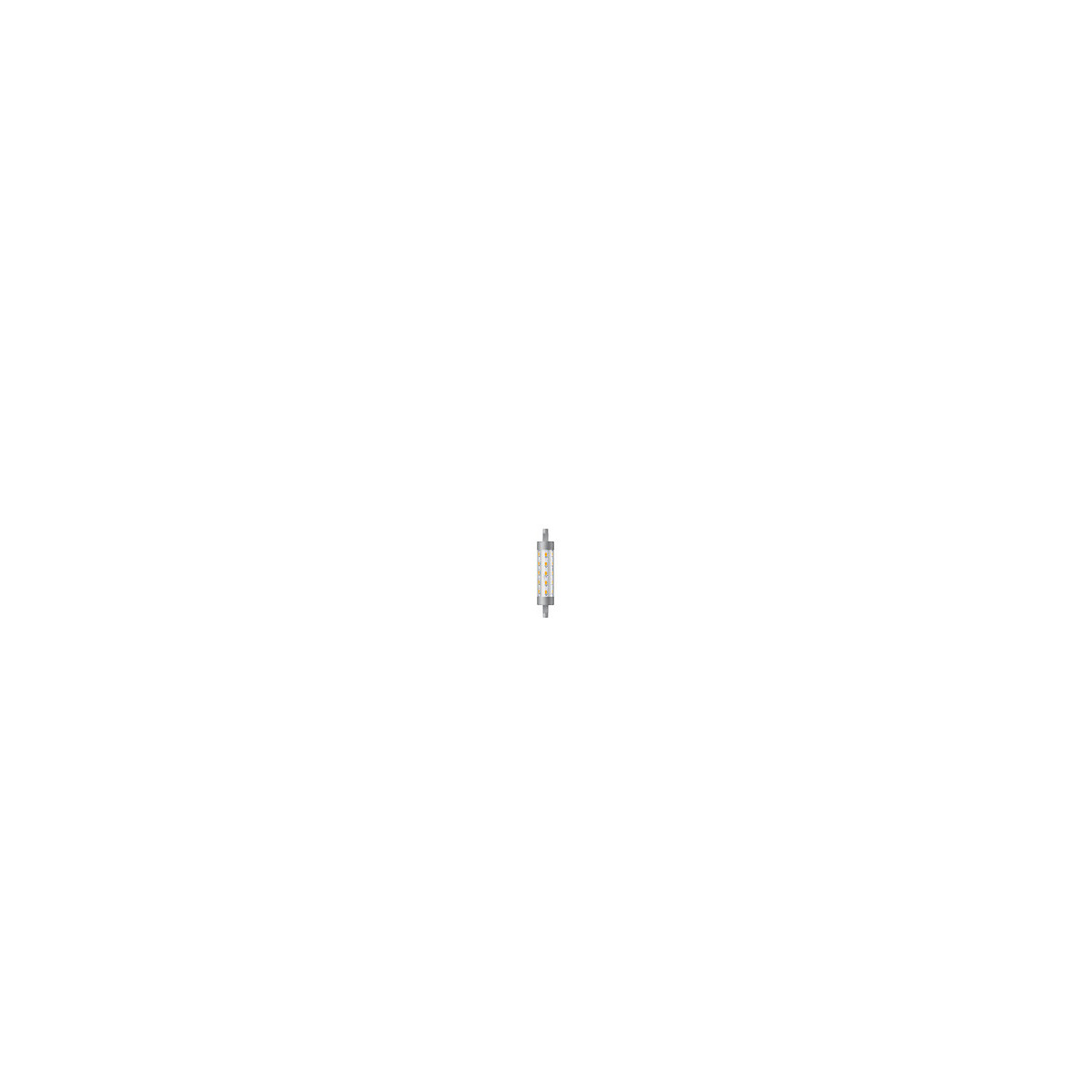 Crayon R7S LED équivalente à une lampe à incandescence 60W, culot R7S, lumière blanche de 3000K. Non compatible avec un variateur de lumière.Spécifications techniques