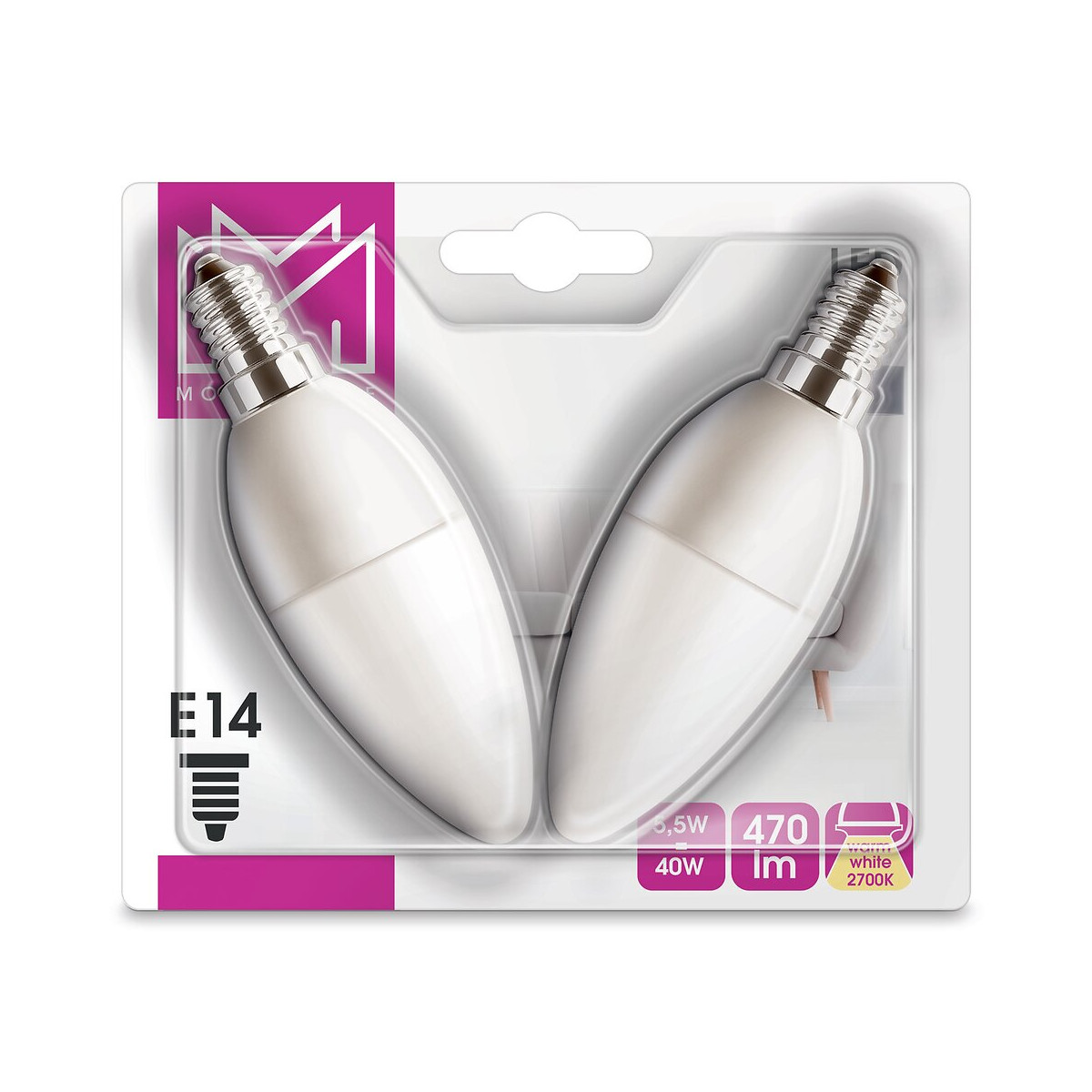2 Ampoules LED équivalent 40W Flamme E14 2700K dépoli