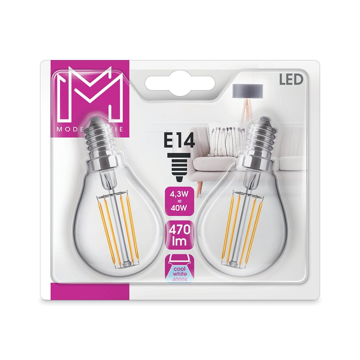 Lot de 2 ampoules LED Sphérique Filament équivalent 40W E14 4000K