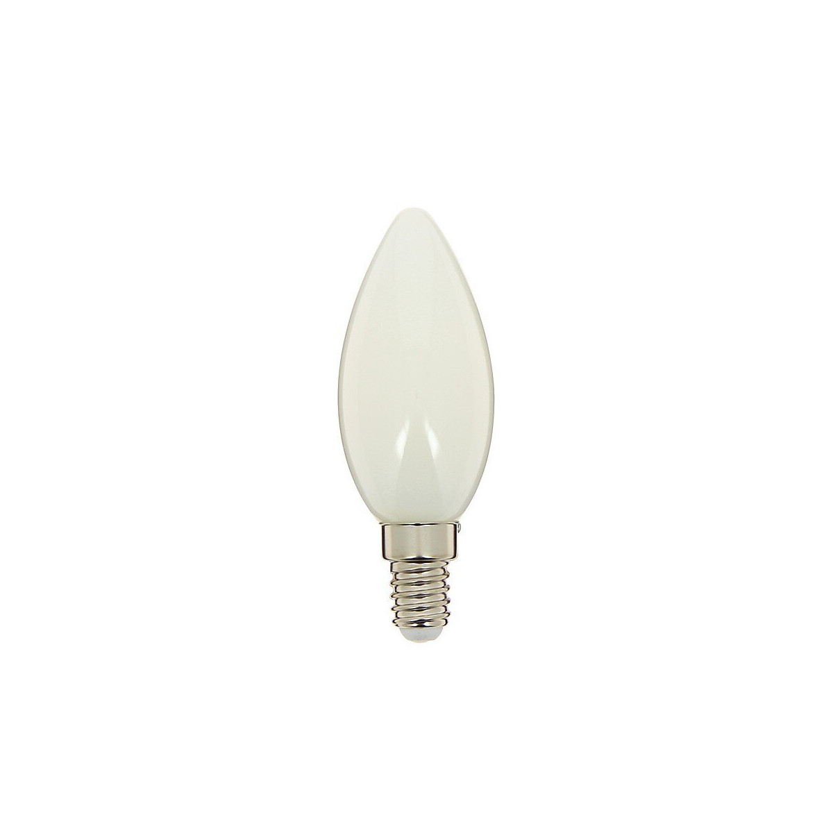 Ampoule à filament LED flamme, culot E14, 4W cons. (40W eq.), lumière blanche chaude Ampoule à filament LED flamme au petit culot à vis E14 permettant une installation simple et rapide. Opter pour un culot E14 c’est choisir une ampoule qui s’adaptera à la majorité de vos petits luminaires ( appliques murales , lampes de chevets ou lustres). Avec sa température de couleur d’aspect blanc chaud, de 2700 kelvins idéale pour créer des ambiances chaleureuses et accueillantes. Avec son angle large elle sera idéale pour vos moments de détente dans vos pièces préférées : salon, salle à manger ou chambre afin de passer du bon temps en famille ou bien faire les devoirs avec vos enfants. Avec ses lumens de 470 lumens, cette ampoule offrira un parfait éclairage d’appoint pour vos chambres ou salon. Équipée de la technologie LED, elle dispose d’une faible consommation d’énergie de 4W , équivalant à la puissance d’éclairage d’une ampoule incandescente de 40W . Ainsi faites des économies d’énergie (jusqu’à 90%) pour réduire vos factures d’électricité. À savoir : comme avec toutes nos ampoules XanLite , optez pour la technologie LED, c’est faire le choix d’ampoules : Moins gourmandes en énergie : jusqu’à 90% d’économies d’énergie réalisées et certifié d’une consommation A++ pour un impact environnemental responsable Plus sûres : grâce à sa technologie, le verre d’une ampoule LED ne chauffe que très faiblement. Ainsi, les risques de brûlure et d’incendie sont largement diminués, permettant une utilisation plus diversifiée de l’ampoule (suspension basse, ampoule sur lampe à poser sans abat-jour, spot bas etc.). De plus, la LED ne produit ni rayonnement UV, ni rayonnement infrarouge, et n’est composée d’aucuns produit dangereux (comme le mercure par exemple). Attention cependant, votre produit comme tout produit électrique produit électrique produit de la chaleur. Aussi, après une utilisation prolongée, le culot de votre ampoule ou bien son dissipateur peuvent être chaud. Qui durent : les ampoules LED ont une longévité plus longue que les autres technologies et ont une durée de vie de 15000 heures (soit environ 7x plus longtemps qu’une ampoule classique). Avec un meilleur rendu des couleurs : la technologie LED permet d’atteindre un IRC >80*. Ainsi, vos ampoules vous apporteront une lumière de qualité. Dont l’allumage est instantané : une ampoule LED met moins d’une seconde pour s’allumer. Par ailleurs, au-delà de tous les avantages de cette ampoule LED, il est important de savoir qu’elle est également recyclable dans tous les points de collecte Recyclum ou autre organisme équivalent (à retrouver dans vos magasins de bricolage ou magasins spécialisés types Boulanger). Vous êtes à la recherche d’une ampoule LED flamme à la lumière plus forte ? Voici le produit qu’il vous faut : RFV470FOCW . (ou autre selon le produit vu) Pour mettre en valeur votre ampoule n’hésitez pas à l’agrémenter par nos différents luminaires . Votre ampoule est garantie 5 ans. Attention : cette ampoule est un produit de catégorie électrique, veiller à ne pas le laisser à portée des enfants. Les caractéristiques techniques de nos produits sont indicatives, elles peuvent être amenées à évoluer suite aux réglementations européennes, aux améliorations techniques ou évolutions technologiques. *IRC, ou Indice de Rendu de Couleurs, est une valeur comprise entre 1 et 100, qui indique avec quel degré de précision une source lumineuse peut restituer la couleur des objets. Sachant que la lumière du jour est celle qui permet au mieux de restituer les couleurs (IRC=100). Plus l’IRC est élevé, plus les couleurs sont vives et précises.
