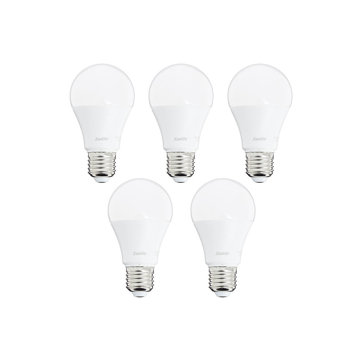 Ce lot de 5 ampoules standard, également appelée A60 pour leur diamètre de 6 cm, sera idéal pour le remplacement de vos anciennes ampoules halogènes ou incandescentes. En effet, leur culot à vis E27 s’adaptera parfaitement à la majeure partie des luminaires. De plus, elles vous permettront de faire des économies tout en vous fournissant un éclairage de qualité : avec une consommation de 9W, elles produiront un éclairage aussi puissant que celui d’une ampoule incandescente de 60W. Un éclairage également optimisé par leur angle d’éclairage de 180°, permettant un éclairage homogène de vos intérieurs. Ainsi, avec ses 806 lumens (flux lumineux défini par la quantité de lumière générée), elles seront idéales pour l’éclairage de vos petites pièces à vivre, comme vos chambres et salon, ou encore l’éclairage d’ambiance de pièces plus volumineuses. Leur éclairage dit blanc neutre (4000 kelvins), vous apportera un éclairage au plus proche de la lumière du jour. Ce lot d’ampoules est également disponible en blanc chaud (2700 kelvins), pour un éclairage chaleureux, se rapprochant de la couleur d’éclairage de vos anciennes ampoules incandescentes et halogènes. À savoir : Comme avec toutes nos ampoules, optez pour la technologie LED, c’est faire le choix d’ampoules : Moins gourmandes en énergie : jusqu’à 80% d’économies d’énergie réalisées. Plus sûres : grâce à sa technologie, le verre d’une ampoule LED ne chauffe que très faiblement. Ainsi, les risques de brûlure et d’incendie sont largement diminués, permettant une utilisation plus diversifiée de l’ampoule (suspension basse, ampoule sur lampe à poser sans abat-jour, spot bas etc.). De plus, la LED ne produit ni rayonnement UV, ni rayonnement infrarouge, et n’est composé d’aucun produit dangereux (comme le mercure par exemple). Qui durent : les ampoules LED ont une longévité plus longue que les autres technologies. Les ampoules LED XanLite ont quant à elles une durée de vie de 15000 heures (soit environ 7x plus longtemps qu’une ampoule classique). Avec un meilleur rendu des couleurs : la technologie LED permet d’atteindre un IRC >80*. Ainsi, vos ampoules vous apporteront une lumière de qualité Attention : ces ampoules sont des produits de catégorie électrique, veillez à ne pas les laisser à la portée des enfants. *IRC, ou Indice de Rendu de Couleurs, est une valeur comprise entre 1 et 100, qui indique avec quel degré de précision une source lumineuse peut restituer la couleur des objets. Sachant que la lumière du jour est celle qui permet au mieux de restituer les couleurs (IRC=100). Plus l’IRC est élevé, plus les couleurs sont vives et précises.