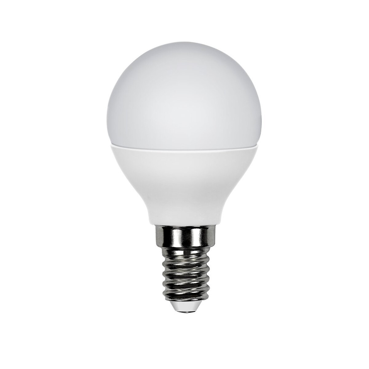 Ampoule LED SMD S11, sphérique G45 - E14, 230 V Puissance consommée (Watts) : 5 W Puissance éclairage (Watts) : 35 W Culot : E14 Flux lumineux (Lumens) : 400 Lm Durée de vie (Heures): 25 000 Température de couleur (degrés Kelvin) : 3000 Dimensions (Long. x Larg. +/-2mm) : 80 x 45 Angle de diffusion : 220° Variateur : Pas compatible Qu’est ce que l’éclairage LED ? Les ampoules LED ou à diodes électroluminescentes sont composées d’éléments opto-électroniques capables d’émettre de la lumière lorsqu’ils sont parcourus par un courant électrique. Ces ampoules consomment très peu d’énergie et peuvent remplacer les ampoules traditionnelles dans un grand nombre d’applications. Les avantages des ampoules LED : Durée de vie beaucoup plus longue que pour les lampes fluorescentes compactes Allumage instantané Résistance mécanique (vibrations, chocs) Ne contient pas de mercure N’émet pas de rayonnement à moyenne ou basse fréquence, susceptible d’être nocif à faible distance Sécurité d’un fonctionnement en basse tension Faible consommation électrique Ne produit pas d’UV (pas d’émission de chaleur) Peut produire une grande variété de couleurs FOX LIGHT propose des ampoules à LED innovantes, fonctionnelles, techniquement perfectionnées et contribuant de manière significative à la protection de l’environnement et à la réduction de l’effet de serre.
