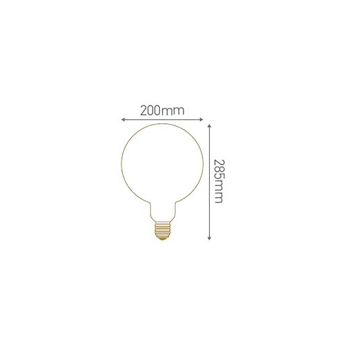 Cette ampoule en forme de globe géant de 200mm de hauteur pour 285mm de diamètre possède un gros culot à visser E27. Elle comporte des filaments torsadés LED qui répandent une belle et douce lumière chaude équivalent à du 2000k pour une intensité lumineuse variable de 240 lumens. Sa finition smoky accentue la douceur de sa lumière. C'est une ampoule très économique de classe énergétique A pour une longue durée de vie de 25000h. C'est une ampoule idéale pour la décoration de la maison et non pour l'éclairage principal.