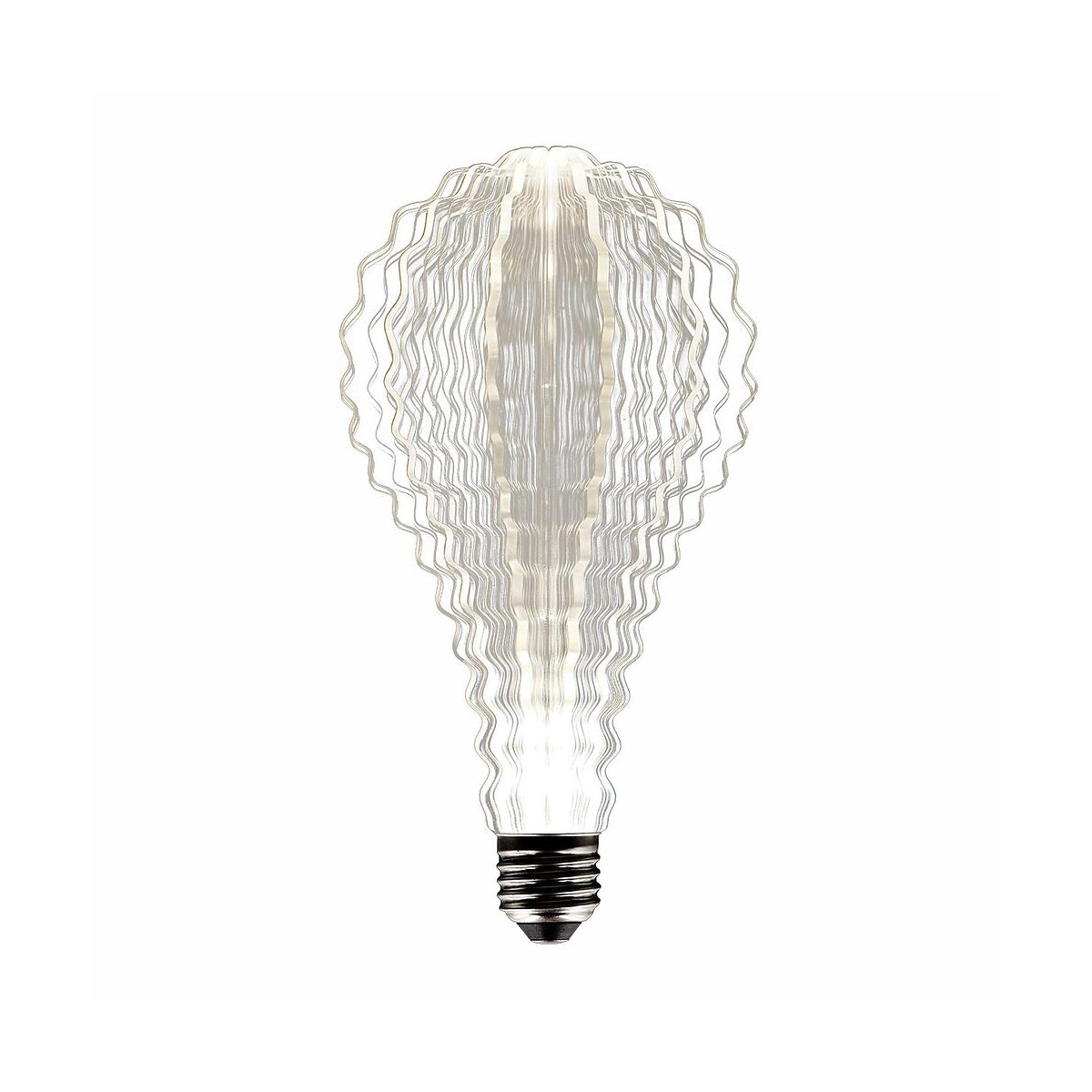 AMPOULE LED : Sweet Wavy est une ampoule à base LED blanc chaud en plastique transparent. Elle apportera la touche fun et design à votre chambre, salon ou cuisine : à vous de choisir où l'utiliser ! Elle est un objet déco à part entière. UTILISATION INTÉRIEUR : l'ampoule Sweet Wavy s'utilise à l'intérieur. Fun et tendance elle amènera de la fantaisie et du design à votre pièce et illuminera vos soirées ! AUTONOMIE : l'ampoule Sweet Wavy possède un culot E27. Il suffit de la visser à la douillet E27 d'une suspension, d'un lampadaire, d'une lampe à poser ou encore d'une lampe de chevet et de la connecter au courant (tension 220-240 V). INTENSITÉ : l'ampoule dispose d'une base LED blanc chaud. Elle est très éclairante avec son flux lumineux de plus de 100 Lumens. PRATIQUE : l'ampoule Sweet Wavy fait 21cm de hauteur et 13cm de diamètre. IP20, elle s'utilise exclusivement à l'intérieur.
