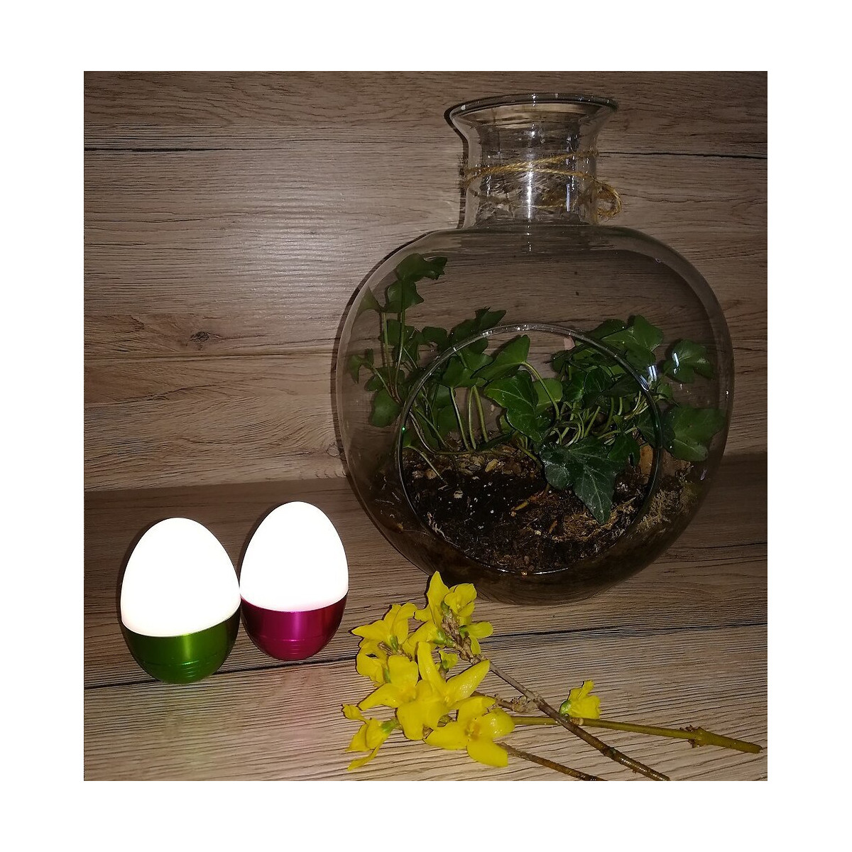 Lot de 2 oeufs LED dans une jolie boite à oeufs. Il suffit de les taper légèrement sur une surface dure pour les allumer / éteindre.