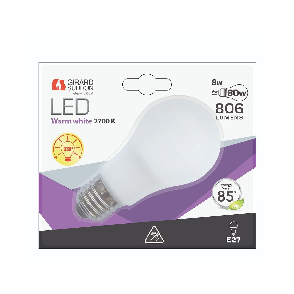 Cette ampoule standard LED, de la marque Girard Sudron, d'une puissance de 9W et 806Lm. L'ampoule a un culot de taille E27. Sa couleur d'éclairage est de 2700K soit une couleur chaude.