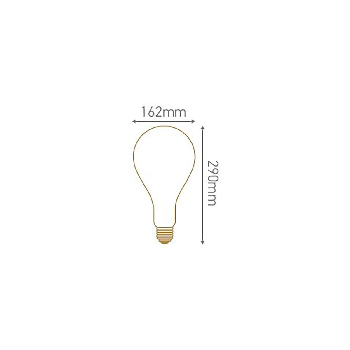 Cette ampoule de forme géante de 290mm de hauteur pour 162mm de diamètre possède un gros culot à visser E27. Elle comporte des filaments torsadés LED qui répandent une belle et douce lumière chaude équivalent à du 2000k pour une intensité lumineuse variable de 160 lumens. Sa finition smoky accentue la douceur de sa lumière. C'est une ampoule très économique de classe énergétique A+ pour une longue durée de vie de 25000h. C'est une ampoule idéale pour la décoration de la maison et non pour l'éclairage principal.