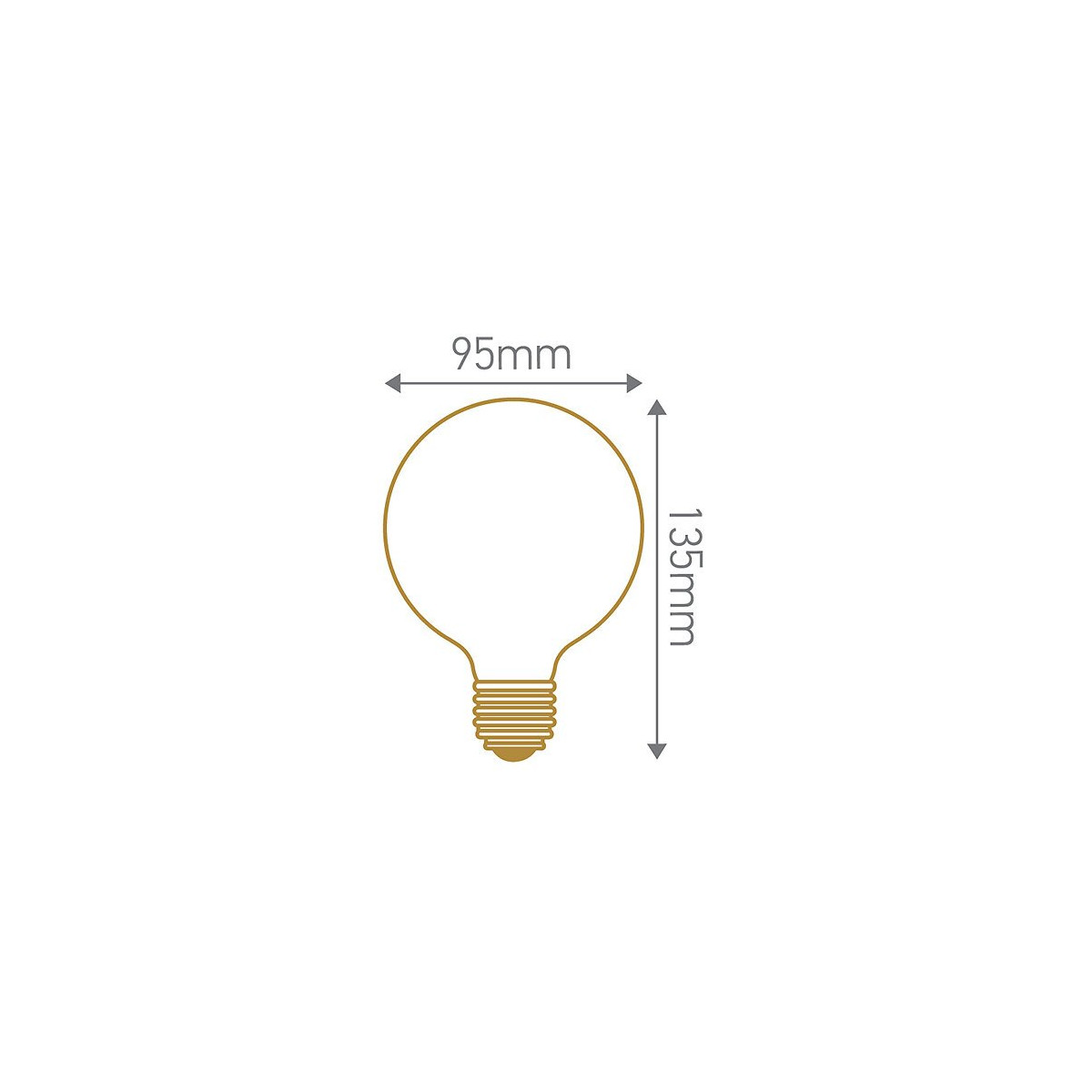 Cette ampoule possède un joli filament LED torsadé de 4W. C'est un globe de 135mm de hauteur pour 95mm de diamètre muni d'un culot de gros format à visser E27. La température de couleur est chaude, équivalent à du 2000k pour une intensité lumineuse de 160 lumens. Vous pouvez faire varier sa lumière selon les moments et les besoins de la journée et cette ampoule est très économique grâce à sa classe énergétique A et sa longue durée de vie de 25000h.
