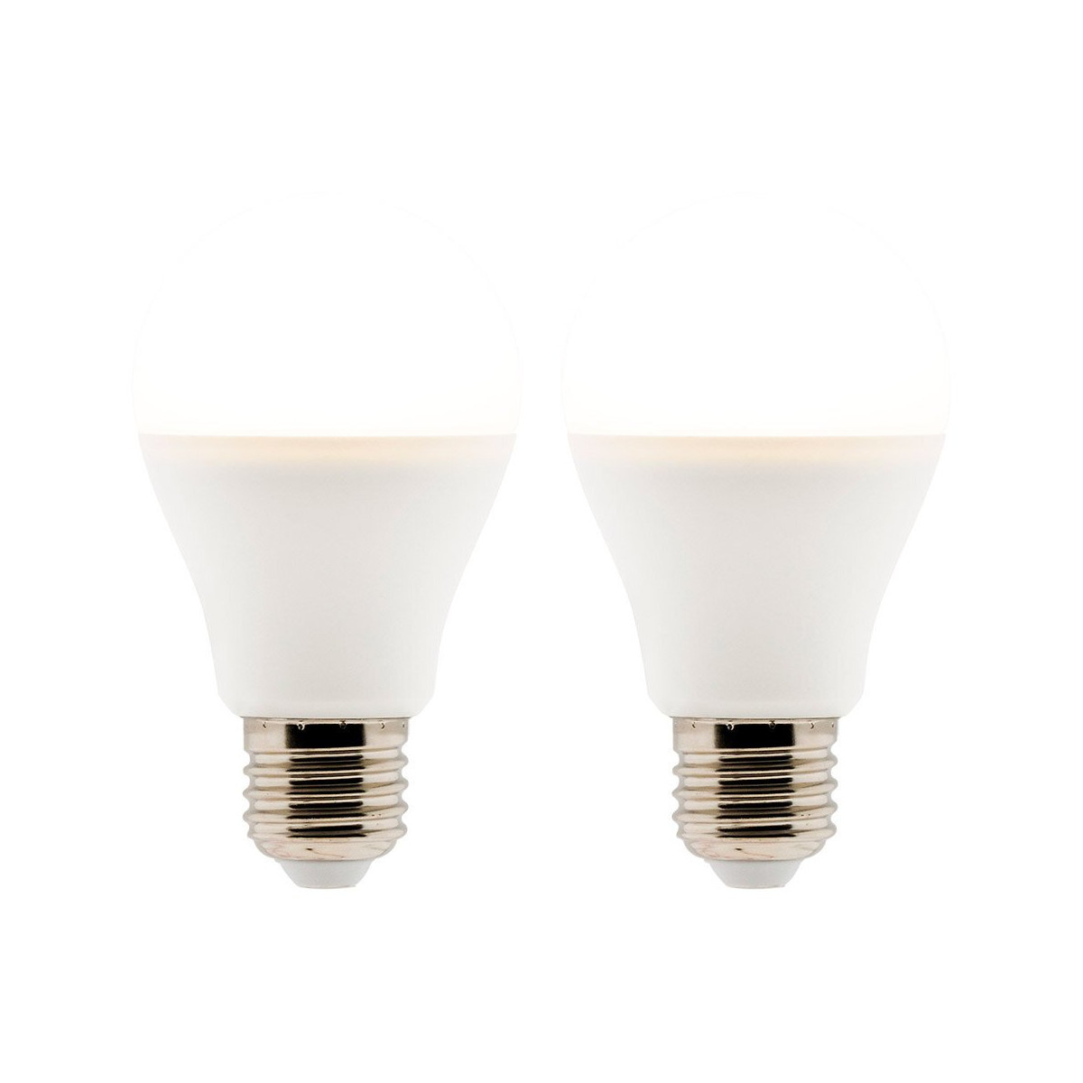 Lot de 2 ampoules LED de forme standard avec culot E27. Ces ampoules LED affichent une puissance consommée de 6W pour une puissance restituée de 40W. Leur intensité lumineuse est de 470 lumens. Elles assurent un éclairage instantané avec une couleur de la lumière blanc chaud (2700K). La LED est un semi-conducteur qui émet de la lumière lorsqu'il est soumis à une stimulation électrique : le phénomène est appelé électroluminescence. Leurs flux lumineux élevés offrent de fantastiques qualités d'éclairage ainsi qu'une durée de vie très longue, tout en consommant très peu d'énergie. C'est la solution la plus adaptée à un environnement écoresponsable, comme les nouvelles constructions aux normes BBC ou RT2012.