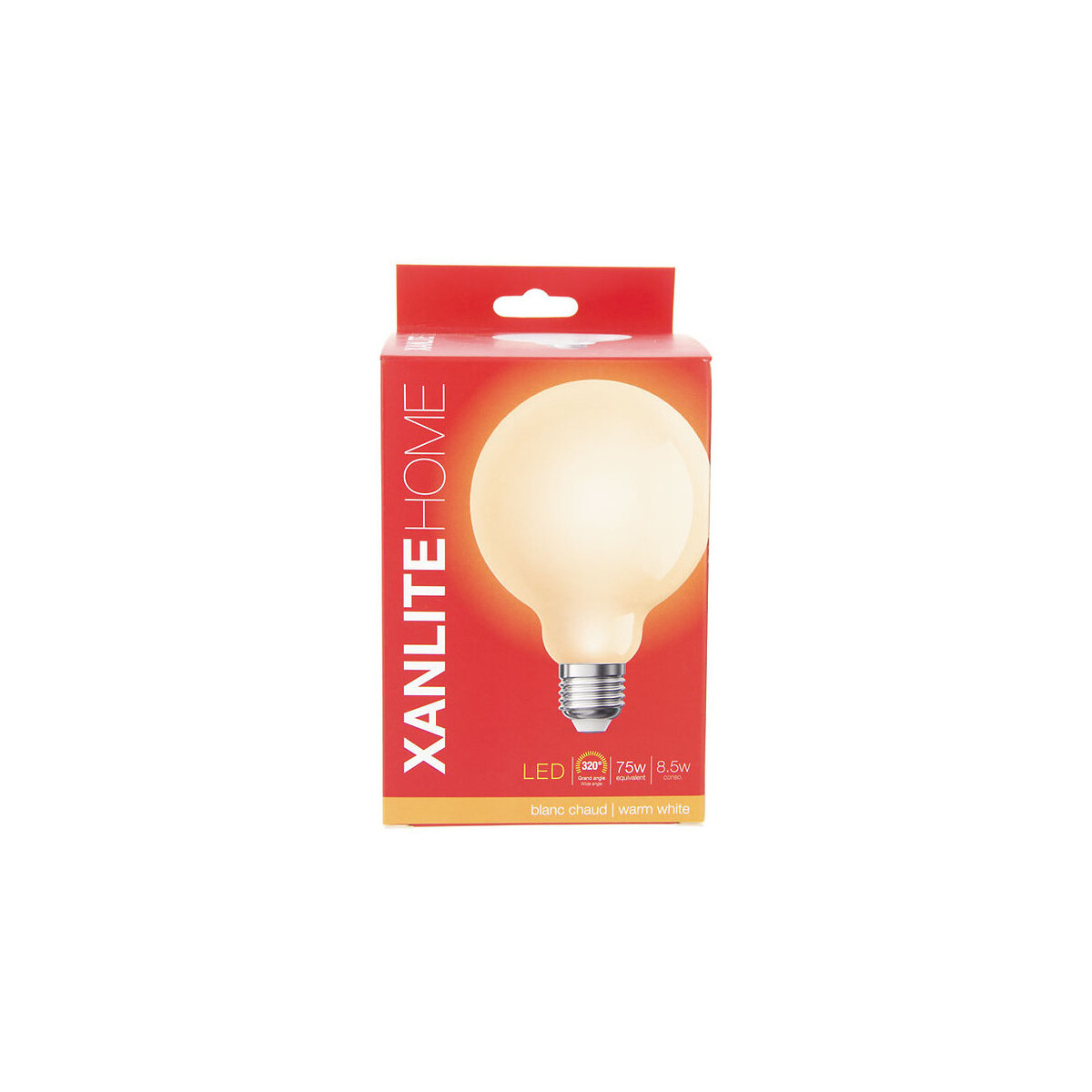 Ampoule LED B95, culot E27, conso. 8,5W, 1055 Lumens, Blanc chaud Ampoule LED B95 au gros culot à vis E27 permettant une installation simple et rapide. Opter pour un culot E27 c’est choisir une ampoule qui s’adaptera à la majorité des luminaires ( lampes à poser , des suspensions ) afin de sublimer votre pièce. Avec sa température de couleur d’aspect blanc chaud, de 2700 kelvins, idéale pour créer des ambiances chaleureuses et accueillantes. Avec son angle large elle sera idéale pour vos moments de détente dans vos pièces préférées : salon, salle à manger ou chambre afin de passer du bon temps en famille ou bien faire les devoirs avec vos enfants. Avec ses lumens de 1055 lumens, cette ampoule offrira un parfait éclairage pour l’éclairage de petites ou moyennes pièces comme vos espaces bureaux, couloirs ou chambres. Équipée de la technologie LED, elle dispose d’une faible consommation d’énergie de 8.5W, équivalant à la puissance d’éclairage d’une ampoule incandescente de 75W. Ainsi faites des économies d’énergie (jusqu’à 90%) pour réduire vos factures d’électricité. À savoir : comme avec toutes nos ampoules XanLite, optez pour la technologie LED, c’est faire le choix d’ampoules : Moins gourmandes en énergie : jusqu’à 90% d’économies d’énergie réalisées et certifié d’une consommation A++ pour un impact environnemental responsable Plus sûres : grâce à sa technologie, le verre d’une ampoule LED ne chauffe que très faiblement. Ainsi, les risques de brûlure et d’incendie sont largement diminués, permettant une utilisation plus diversifiée de l’ampoule (suspension basse, ampoule sur lampe à poser sans abat-jour, spot bas etc.). De plus, la LED ne produit ni rayonnement UV, ni rayonnement infrarouge, et n’est composée d’aucuns produit dangereux (comme le mercure par exemple). Attention cependant, votre produit comme tout produit électrique produit électrique produit de la chaleur. Aussi, après une utilisation prolongée, le culot de votre ampoule ou bien son dissipateur peuvent être chaud. Qui durent : les ampoules LED ont une longévité plus longue que les autres technologies et ont une durée de vie de 15000 heures (soit environ 7x plus longtemps qu’une ampoule classique). Avec un meilleur rendu des couleurs : la technologie LED permet d’atteindre un IRC >80*. Ainsi, vos ampoules vous apporteront une lumière de qualité. Dont l’allumage est instantané : une ampoule LED met moins d’une seconde pour s’allumer. Par ailleurs, au-delà de tous les avantages de cette ampoule LED, il est important de savoir qu’elle est également recyclable dans tous les points de collecte Recyclum ou autre organisme équivalent (à retrouver dans vos magasins de bricolage ou magasins spécialisés types Boulanger). Pour mettre en valeur votre ampoule n’hésitez pas à l’agrémenter par nos différents luminaires . Votre ampoule est garantie 5 ans. Attention : cette ampoule est un produit de catégorie électrique, veiller à ne pas le laisser à portée des enfants. Les caractéristiques techniques de nos produits sont indicatives, elles peuvent être amenées à évoluer suite aux réglementations européennes, aux améliorations techniques ou évolutions technologiques. *IRC, ou Indice de Rendu de Couleurs, est une valeur comprise entre 1 et 100, qui indique avec quel degré de précision une source lumineuse peut restituer la couleur des objets. Sachant que la lumière du jour est celle qui permet au mieux de restituer les couleurs (IRC=100). Plus l’IRC est élevé, plus les couleurs sont vives et précises.