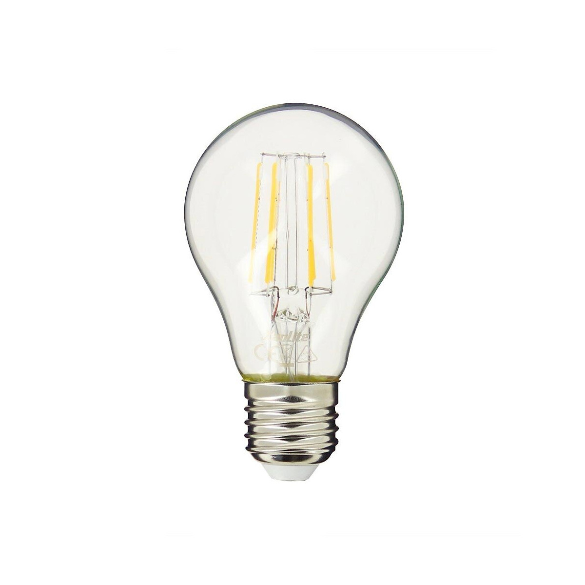 Ampoule à filament LED A60, culot E27, cons. (60W eq.), lumière blanc neutre Ampoule à filament LED au gros culot à vis E27 permettant une installation simple et rapide. Opter pour un culot E27 c’est choisir une ampoule qui s’adaptera à la majorité des luminaires ( lampes à poser , des suspensions ) afin de sublimer votre pièce. Avec sa température de couleur d’aspect blanc neutre, de 4000 kelvins idéale pour avoir un éclairage au plus proche de la lumière naturelle, favorisant l’activité. Avec son angle large elle sera idéale pour vos moments de détente dans vos pièces préférées : salon, salle à manger ou chambre afin de passer du bon temps en famille ou bien faire les devoirs avec vos enfants. Avec ses lumens de 806 lumens, cette ampoule offrira un parfait éclairage pour l’éclairage de petites ou moyennes pièces comme vos espaces bureaux, couloirs ou chambres. Équipée de la technologie LED, elle dispose d’une faible consommation d’énergie de 8W, équivalant à la puissance d’éclairage d’une ampoule incandescente de 60W. Ainsi faites des économies d’énergie (jusqu’à 90%) pour réduire vos factures d’électricité. À savoir : comme avec toutes nos ampoules XanLite, optez pour la technologie LED, c’est faire le choix d’ampoules : Moins gourmandes en énergie : jusqu’à 90% d’économies d’énergie réalisées et certifié d’une consommation A++ pour un impact environnemental responsable Plus sûres : grâce à sa technologie, le verre d’une ampoule LED ne chauffe que très faiblement. Ainsi, les risques de brûlure et d’incendie sont largement diminués, permettant une utilisation plus diversifiée de l’ampoule (suspension basse, ampoule sur lampe à poser sans abat-jour, spot bas etc.). De plus, la LED ne produit ni rayonnement UV, ni rayonnement infrarouge, et n’est composée d’aucuns produit dangereux (comme le mercure par exemple). Attention cependant, votre produit comme tout produit électrique produit électrique produit de la chaleur. Aussi, après une utilisation prolongée, le culot de votre ampoule ou bien son dissipateur peuvent être chaud. Qui durent : les ampoules LED ont une longévité plus longue que les autres technologies et ont une durée de vie de 15000 heures (soit environ 7x plus longtemps qu’une ampoule classique). Avec un meilleur rendu des couleurs : la technologie LED permet d’atteindre un IRC >80*. Ainsi, vos ampoules vous apporteront une lumière de qualité. Dont l’allumage est instantané : une ampoule LED met moins d’une seconde pour s’allumer. Par ailleurs, au-delà de tous les avantages de cette ampoule LED, il est important de savoir qu’elle est également recyclable dans tous les points de collecte Recyclum ou autre organisme équivalent (à retrouver dans vos magasins de bricolage ou magasins spécialisés types Boulanger). Vous êtes à la recherche d’une ampoule LED Globe à la lumière plus douce ? Voici le produit qu’il vous faut : RFE806G Pour mettre en valeur votre ampoule n’hésitez pas à l’agrémenter par nos différents luminaires . Votre ampoule est garantie 5 ans. Attention : cette ampoule est un produit de catégorie électrique, veiller à ne pas le laisser à portée des enfants. Les caractéristiques techniques de nos produits sont indicatives, elles peuvent être amenées à évoluer suite aux réglementations européennes, aux améliorations techniques ou évolutions technologiques. *IRC, ou Indice de Rendu de Couleurs, est une valeur comprise entre 1 et 100, qui indique avec quel degré de précision une source lumineuse peut restituer la couleur des objets. Sachant que la lumière du jour est celle qui permet au mieux de restituer les couleurs (IRC=100). Plus l’IRC est élevé, plus les couleurs sont vives et précises.