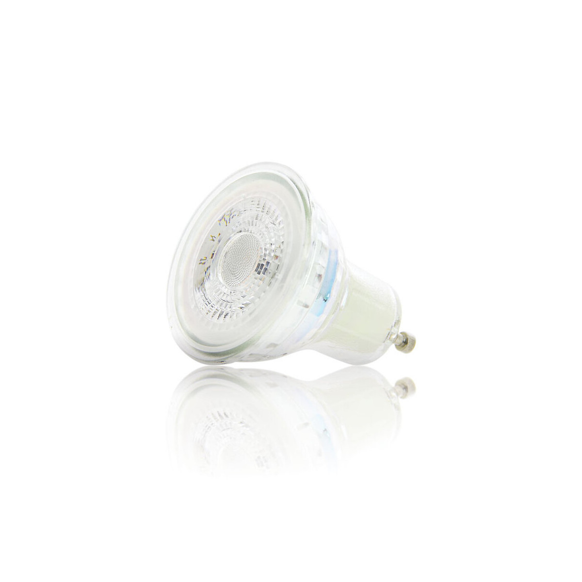 Pack de 5 spots LED, au culot GU10 permettant une installation simple et rapide . Avec leur température de couleur de 2700K (Kelvins) d’aspect blanc chaud, ces spots LED XanLite offriront un éclairage chaleureux à votre intérieur. Ils seront idéals pour vos moments de détentes dans les pièces à vivre et les chambres . Nous recommandons également ce produit pour les restaurants, les hôtels, les bars ou tout autre établissement voulant amener une ambiance relaxante et cocooning dans ses espaces. Conseils pratiques : Équipés de la technologie LED , ils disposent d’une classe énergétique A+ ainsi que d'une faible consommation d’énergie de 4,8W, équivalant à l’éclairage d’une ampoule incandescente de 50W. Cela vous permettra de faire des économies d’énergie (jusqu’à 90%) pour réduire vos factures d’électricité. De plus, ces spots LED s’allument instantanément sans chauffer, ce qui leur permet de bénéficier d’une durée de vie prolongée : jusqu’à 15 000 heures soit l’équivalent de 3 ans d’éclairage à raison de 2,7h/jour. Cela vous évitera notamment de remplacer vos ampoules tous les ans. Par ailleurs, au-delà de tous les avantages de ces spots LED, il est important de savoir qu’ils sont également recyclables dans tous les points de collecte Récylum. Vous êtes à la recherche d’un pack de spots LED à la lumière plus neutre ? Voici le produit qu’il vous faut : PACK5RCXG50SCW. À découvrir également le reste de notre gamme de spots LED.