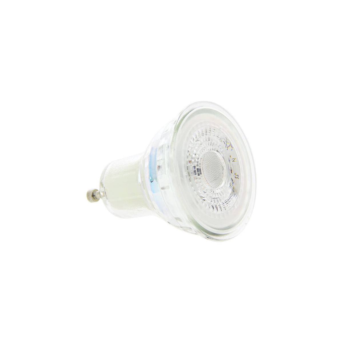 Ce lot de 5 ampoules LED spot, avec réflecteur et culot GU10 sera idéal pour le remplacement de vos anciennes ampoules halogènes ou incandescentes, tout en vous faisant faire des économies d’énergie. En effet, avec une consommation de 4.8 W, ces ampoules vous fourniront un éclairage aussi puissant que celui d’ampoules incandescentes de 50W. Ainsi avec leurs 345 lumens (flux lumineux défini par la quantité de lumière générée), elles seront idéales pour l’éclairage de vos pièces à vivre, ou pour des éclairages d’appoint. De plus, avec leur angle de 36°, elles vous offriront d’excellents éclairages focalisés, pour la mise en avant d’angles particuliers ou d’objets décoratifs. On les retrouve plus particulièrement dans des plafonniers, avec spots orientables ou directement encastré dans un faux plafond. D’autre part, leur couleur d’éclairage, dit « blanc neutre » (4000 kelvins), vous apportera une lumière au plus proche de celle de la lumière du jour, adapté à toutes vos activités quotidiennes. Ce lot d’ampoules existe également en version blanc chaud (2700 kelvins), pour des éclairages chaleureux, idéaux pour vos moments de détente. Petit +, leur nouveau design en verre, rappelant les anciennes ampoules halogènes et apportant une touche d’esthétisme à vos luminaires. À savoir : Comme avec toutes nos ampoules, optez pour la technologie LED, c’est faire le choix d’ampoules : Moins gourmandes en énergie : jusqu’à 80% d’économies d’énergie réalisées. Plus sûres : grâce à sa technologie, le verre d’une ampoule LED ne chauffe que très faiblement. Ainsi, les risques de brûlure et d’incendie sont largement diminués, permettant une utilisation plus diversifiée de l’ampoule (suspension basse, ampoule sur lampe à poser sans abat-jour, spot bas etc.). De plus, la LED ne produit ni rayonnement UV, ni rayonnement infrarouge, et n’est composé d’aucun produit dangereux (comme le mercure par exemple). Qui durent : les ampoules LED ont une longévité plus longue que les autres technologies. Les ampoules LED XanLite ont quant à elles une durée de vie de 15000 heures (soit environ 7x plus longtemps qu’une ampoule classique). Avec un meilleur rendu des couleurs : la technologie LED permet d’atteindre un IRC >80*. Ainsi, vos ampoules vous apporteront une lumière de qualité Dont l’allumage est instantané : une ampoule LED met moins d’une seconde pour s’allumer. Attention : ces ampoules sont des produits de catégorie électrique, veillez à ne pas les laisser à la portée des enfants.