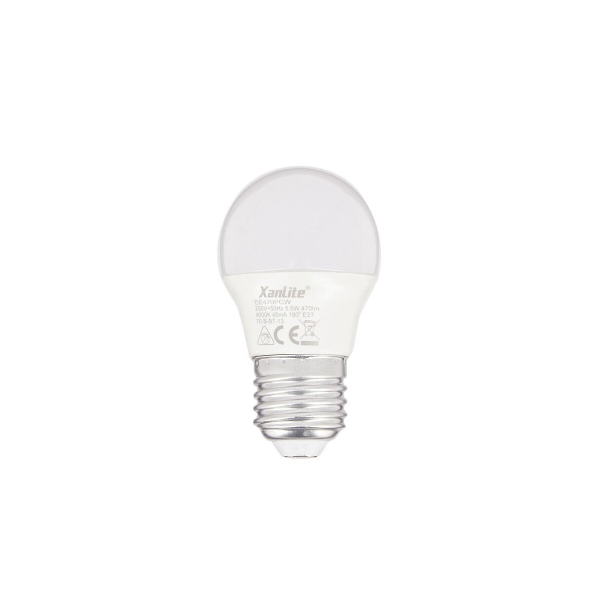 Ampoule d’éclairage de 40W pour seulement 5.3W consommé. Ce produit développé par Xanlite à une durée de vie 15 000 heures soit l’équivalent de 15 ans d’éclairage à plein temps (pour une utilisation 2,7h/jours). Equipé de LED SMD cette ampoule peut remplacer n’importe quel produit équivalent halogène ou incandescent. Grâce à sa faible consommation vous pourrez économisez jusqu'à 80% de votre l’énergie. Avec sa température de couleur de 4000 Kelvin d’émission lumineuse votre ampoule émet une lumière neutre, idéale pour les pièces à vivre et de travail comme les couloirs ou bureaux.