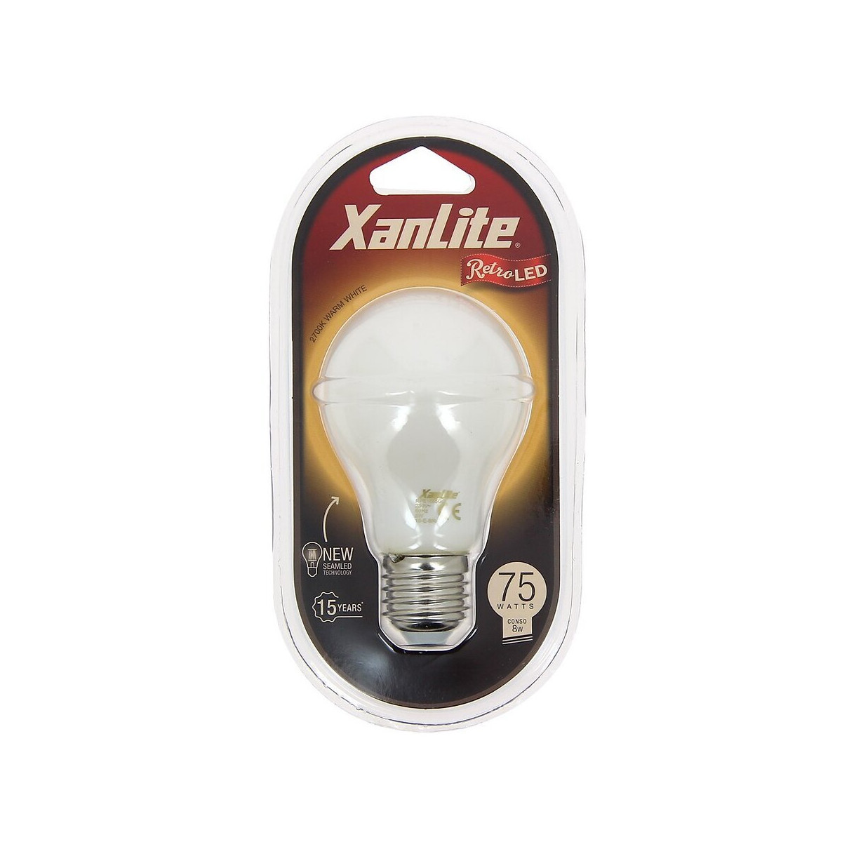 Ampoule à filament LED A60, culot E27, 8W cons. (75W eq.), lumière blanche chaude Ampoule à filament LED A60 au gros culot à vis E27 permettant une installation simple et rapide. Opter pour un culot E27 c’est choisir une ampoule qui s’adaptera à la majorité des luminaires ( lampes à poser , des suspensions ) afin de sublimer votre pièce. Avec sa température de couleur d’aspect blanc chaud de 2700 kelvins, idéale pour avoir un éclairage au plus proche de la lumière naturelle, favorisant l’activité. Avec son angle large elle sera idéale pour vos moments de détente dans vos pièces préférées : salon, salle à manger ou chambre afin de passer du bon temps en famille ou bien faire les devoirs avec vos enfants. Avec ses lumens de 1055 lumens, cette ampoule offrira un parfait éclairage pour l’éclairage de petites ou moyennes pièces comme vos espaces bureaux, couloirs ou chambres. Équipée de la technologie LED, elle dispose d’une faible consommation d’énergie de 8W, équivalant à la puissance d’éclairage d’une ampoule incandescente de 75W. Ainsi faites des économies d’énergie (jusqu’à 90%) pour réduire vos factures d’électricité. À savoir : comme avec toutes nos ampoules XanLite, optez pour la technologie LED, c’est faire le choix d’ampoules : Moins gourmandes en énergie : jusqu’à 90% d’économies d’énergie réalisées et certifié d’une consommation A+ pour un impact environnemental responsable Plus sûres : grâce à sa technologie, le verre d’une ampoule LED ne chauffe que très faiblement. Ainsi, les risques de brûlure et d’incendie sont largement diminués, permettant une utilisation plus diversifiée de l’ampoule (suspension basse, ampoule sur lampe à poser sans abat-jour, spot bas etc.). De plus, la LED ne produit ni rayonnement UV, ni rayonnement infrarouge, et n’est composée d’aucuns produit dangereux (comme le mercure par exemple). Attention cependant, votre produit comme tout produit électrique produit électrique produit de la chaleur. Aussi, après une utilisation prolongée, le culot de votre ampoule ou bien son dissipateur peuvent être chaud. Qui durent : les ampoules LED ont une longévité plus longue que les autres technologies et ont une durée de vie de 25000 heures (soit environ 7x plus longtemps qu’une ampoule classique). Avec un meilleur rendu des couleurs : la technologie LED permet d’atteindre un IRC >80*. Ainsi, vos ampoules vous apporteront une lumière de qualité. Dont l’allumage est instantané : une ampoule LED met moins d’une seconde pour s’allumer. Par ailleurs, au-delà de tous les avantages de cette ampoule LED, il est important de savoir qu’elle est également recyclable dans tous les points de collecte Recyclum ou autre organisme équivalent (à retrouver dans vos magasins de bricolage ou magasins spécialisés types Boulanger). Vous êtes à la recherche d’une ampoule LED à filament à la lumière plus forte? Voici le produit qu’il vous faut : RFE1055GOCW Pour mettre en valeur votre ampoule n’hésitez pas à l’agrémenter par nos différents luminaires . Votre ampoule est garantie 5 ans. Attention : cette ampoule est un produit de catégorie électrique, veiller à ne pas le laisser à portée des enfants. Les caractéristiques techniques de nos produits sont indicatives, elles peuvent être amenées à évoluer suite aux réglementations européennes, aux améliorations techniques ou évolutions technologiques. *IRC, ou Indice de Rendu de Couleurs, est une valeur comprise entre 1 et 100, qui indique avec quel degré de précision une source lumineuse peut restituer la couleur des objets. Sachant que la lumière du jour est celle qui permet au mieux de restituer les couleurs (IRC=100). Plus l’IRC est élevé, plus les couleurs sont vives et précises.
