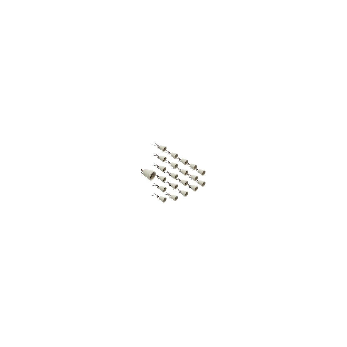 Grâce à ce pack de 20 douilles E27, vous pourrez utiliser toutes les ampoules à culot E27 que vous désirez et ainsi illuminez les espaces souhaités. Avec la possibilité de l'installer au plafond, au mur ou même sur vos meubles, vous pourrez utiliser ce petit accessoire pour tous vos projets lumineux. Découvrez toutes nos autres ! #Fiche Technique# DOUILLE E27 Tension : (en Volt) 220V Fréquence: (en Hertz) 50-60Hz Type de culot: E27 Compatible avec: Ampoule E27 Indice de protection: IP20 Dimension: (en centimètre) Ø4 x 4.5 cm Longueur du câble: (en centimètre) 15cm Matériel: Céramique Garantie: 2 ans Certification: CE #Guides utiles#