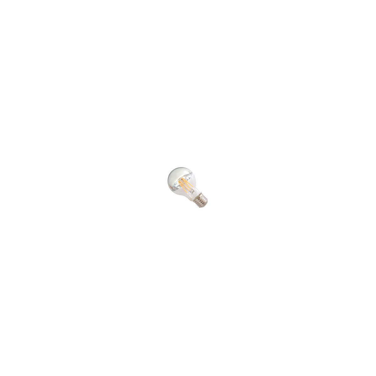 Changez pour notre Ampoule LED E27 Filament 7W A60 Reflet Argent qui apporte à la fois de la modernité et une touche vintage à votre pièce. De ses reflets argentés à ses filaments dorés, cette ampoule décorera votre intérieur avec harmonie et ne manquera pas à sa première fonction d'éclairage. Son angle d'éclairage de 180° sublime presque l'entièreté de l'intérieur avec un rendement lumineux de 800 lumens. Disponible en blanc chaud, la lumière chaleureuse contraste avec le miroir glacé et ne fait que ressortir l'éclat de la lampe. Le design est conçu pour que la lumière soit répandue vers le bas et l'arrière. Elle n'est pas dimmable. Silamp propose la livraison offerte à partir de 59.99€. Découvrez nos autres ! #Fiche Technique# AMPOULE LED E27 FILAMENT 7W A60 REFLET ARGENT Puissance: (en Watt) 7W Tension: (en Volt) 220-240V Fréquence: (en Hertz) 50-60Hz Luminosité: (en Lumens) 800 lm Dimension du produit: (en mm) Ø60 x 105 mm Indice de protection: IP20 Angle d'éclairage: 180° Durée de vie: (en +/- heures) ~ 25 000h Classe énergétique: F Garantie: 2 ans Certification: CE #Certificats#