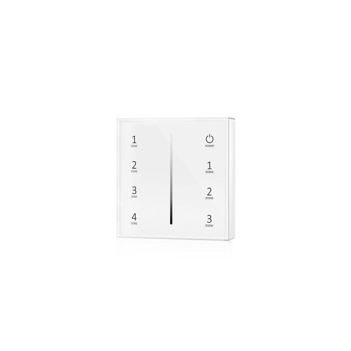Le Variateur Tactile Monochrome RF en Saillie 4 Zones est un accessoire incontournable pour changer la couleur ou l'intensité lumineuse de votre éclairage monochorme. Les caractéristiques du Variateur Tactile Monochrome RF en Saillie 4 Zones Gestion à distance à l'aide de la commande Ce variateur permet de régler l'intensité de votre luminaire très simplement, d'une pression du doigt. Il faudra coupler ce variateur à un dimmer. En effet, ce contrôleur lumineux fonctionne par RF. Votre variateur LED fonctionne parfaitement jusqu'à une distance de 30m. Des possibilités d'association variées Afin de réaliser l'appairage de base, il faudra rester appuyé 5 secondes sur le bouton MATCH de votre dimmer, puis dans le même temps appuyer sur une zone de votre variateur. Appuyez de nouveau 5 secondes sur le bouton MATCH pour annuler l'appairage. Les différentes zones vous permettent de contrôler plusieurs rubans. Pour appairer votre contrôleur à votre ruban et définir une nouvelle zone, il faudra éteindre votre ruban via votre secteur, rallumer et appuyer 3 fois sur la zone où vous souhaitez appairer le ruban. Ce dernier clignotera 3 fois avant d'être bien relié. Enfin, vous avez le choix de différentes SCENE. Si vous souhaitez illuminer intensément votre pièce et d'un coup passer à un éclairage peu intense, c'est possible. Une fois votre ruban au maximum de son éclairage, restez appuyé 2 secondes sur SCENE 1 pour enregistrer ce scénario, faites la même opération sur SCENE 2 mais avec un éclairage faible. Ainsi en appuyant sur scène 1 le ruban éclairera intensément et lorsque vous appuyez sur scène 2, l'éclairage sera peu intense. Si vous souhaitez créer plusieurs zones d'éclairage, il faudra vous munir d'un dimmer par zone. #Fiche Technique# VARIATEUR TACTILE MONOCHROME WIFI EN SAILLIE 4 ZONES Tension : (en Volt) 3VDC (AAA x2) Intensité : (en Ampère) 20 mA Signal : RF (2.4 GHz) Distance de fonctionnement : 30m max Temp. de fonctionnement : -30°C à +55°C Durée de vie : (en +/- heures) ~ 20 000h Dimension du variateur : 85x85mm Classe énergétique : A+ Garantie : 2 ans Certification : CE