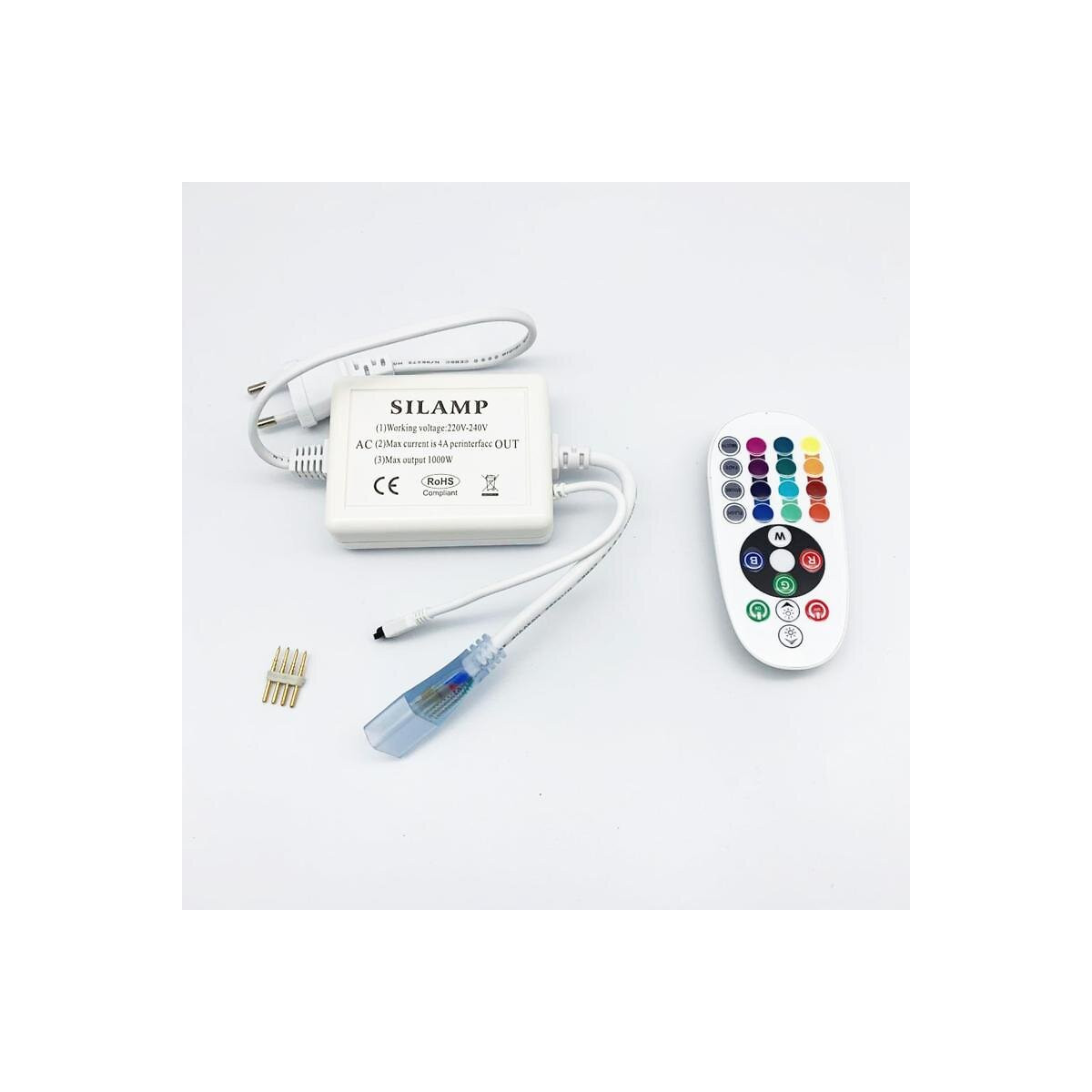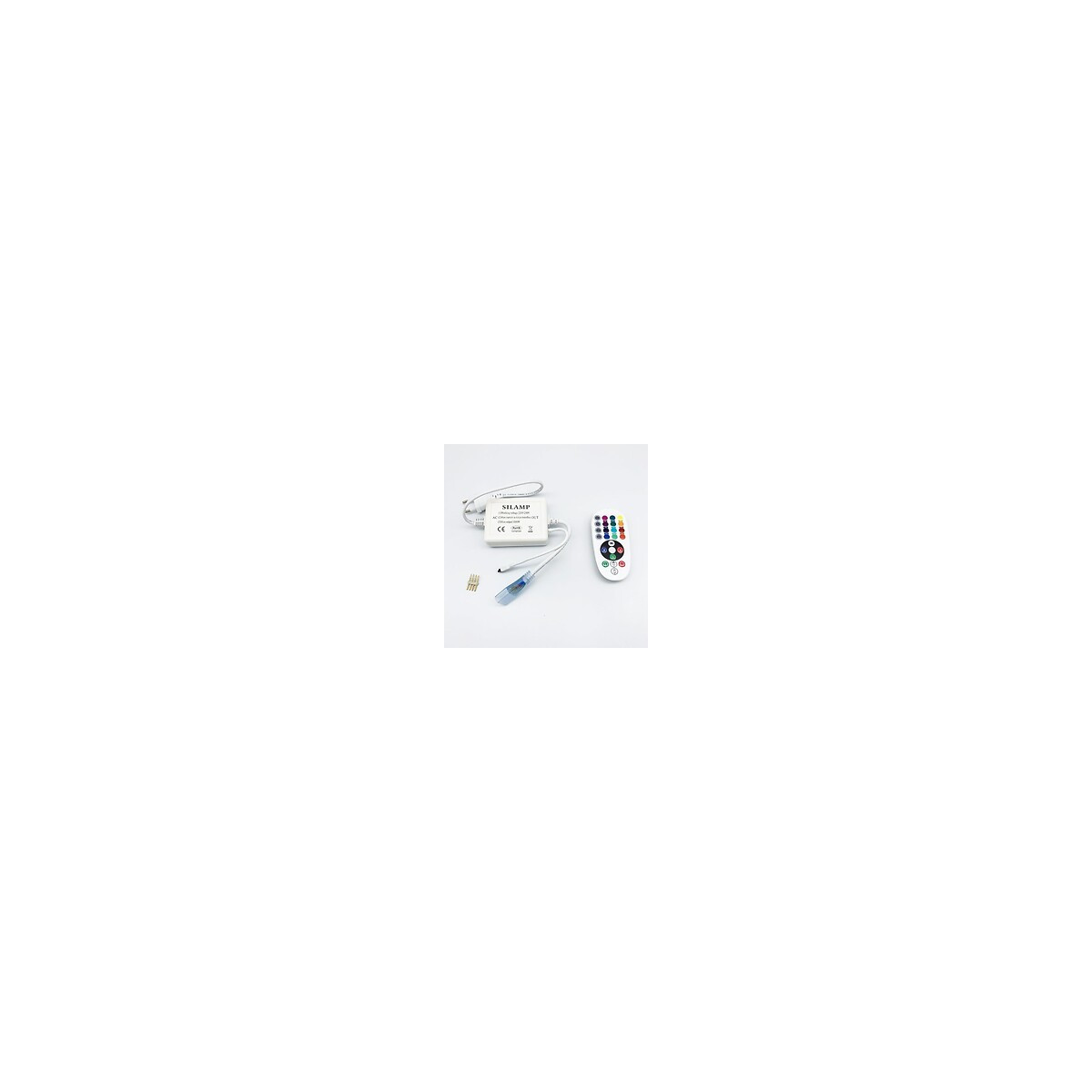 Le Contrôleur RGB & Alimentation pour Ruban LED 220V RGB est un accessoire indispensable pour régler luminosité et couleur de votre bande LED 220V RGB. Les caractéristiques du contrôleur RGB & Alimentation pour ruban LED 220V RGB Gestion à distance à l'aide de la télécommande Le contrôleur RGB 220V avec télécommande infrarouge permet un contrôle à distance de votre bande LED mais aussi une connexion directement en 220V à une prise secteur. Si celle-ci est trop éloignée, vous pouvez tout à fait sectionner la prise et rajouter du câble. L'infrarouge de la télécommande fonctionne jusqu'à 8-10 mètres de distance. Vous pourrez gérer à distance les canaux RVB et sélectionner la couleur et l'effet désiré, l'intensité et le mode d'éclairage. Certification et normes de sécurité Cet accessoire est conçu pour supporter une charge inférieure à 1000W. Conçu sous les normes CE et classé A+ sur l'échelle énergétique européenne, il garantit un usage quotidien économe en énergie et sécurisé. Découvrez notre disponible au mètre et en bobine de 50 mètres ! #Fiche Technique# CONTRÔLEUR RGB & ALIMENTATION POUR RUBAN RGB 220V Charge maximale : (en Watt) Max 1000W Tension : (en Volt) 220-240V AC Intensité : (en Ampère) 4A Contrôle de distance : Infrarouge Temp. de fonctionnement : -20°C à +60°C Durée de vie : (en +/- heures) ~ 20 000h Dimension de la télécommande : 110 x 50 x 15mm Dimension de l'alimentation : 90 x 70 x 25mm Longueur Câble + Alimentation : 550mm Classe énergétique : A+ Garantie : 2 ans Certification : CE #Guide d'utilisation#