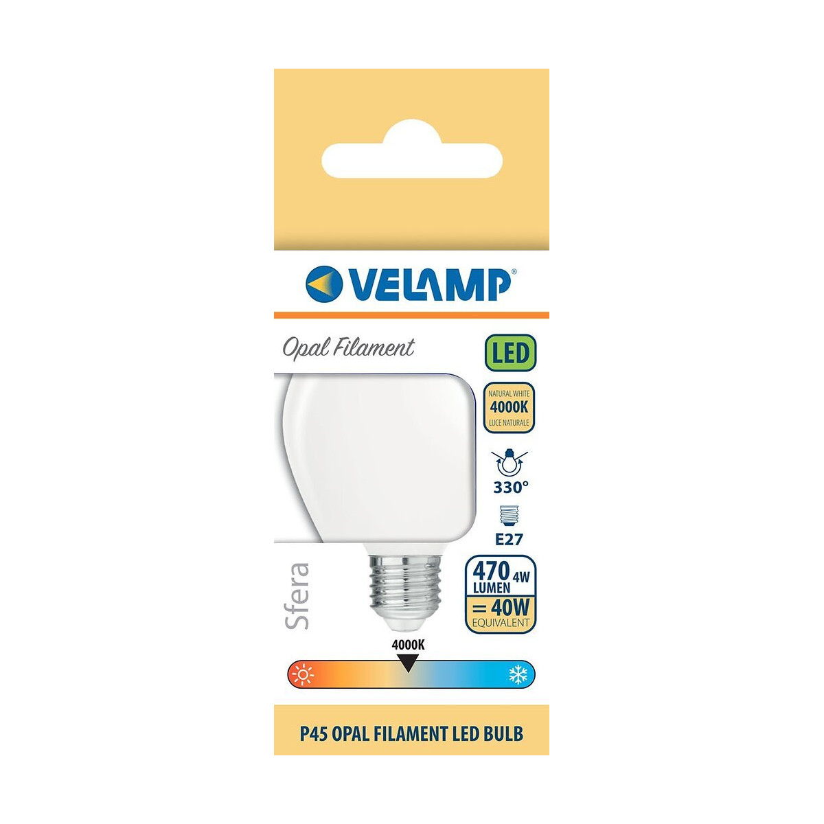 Ampoule À Filament Led Opal, Mini-sphérique P45, 4w / 470lm, Culot E27, 4000k