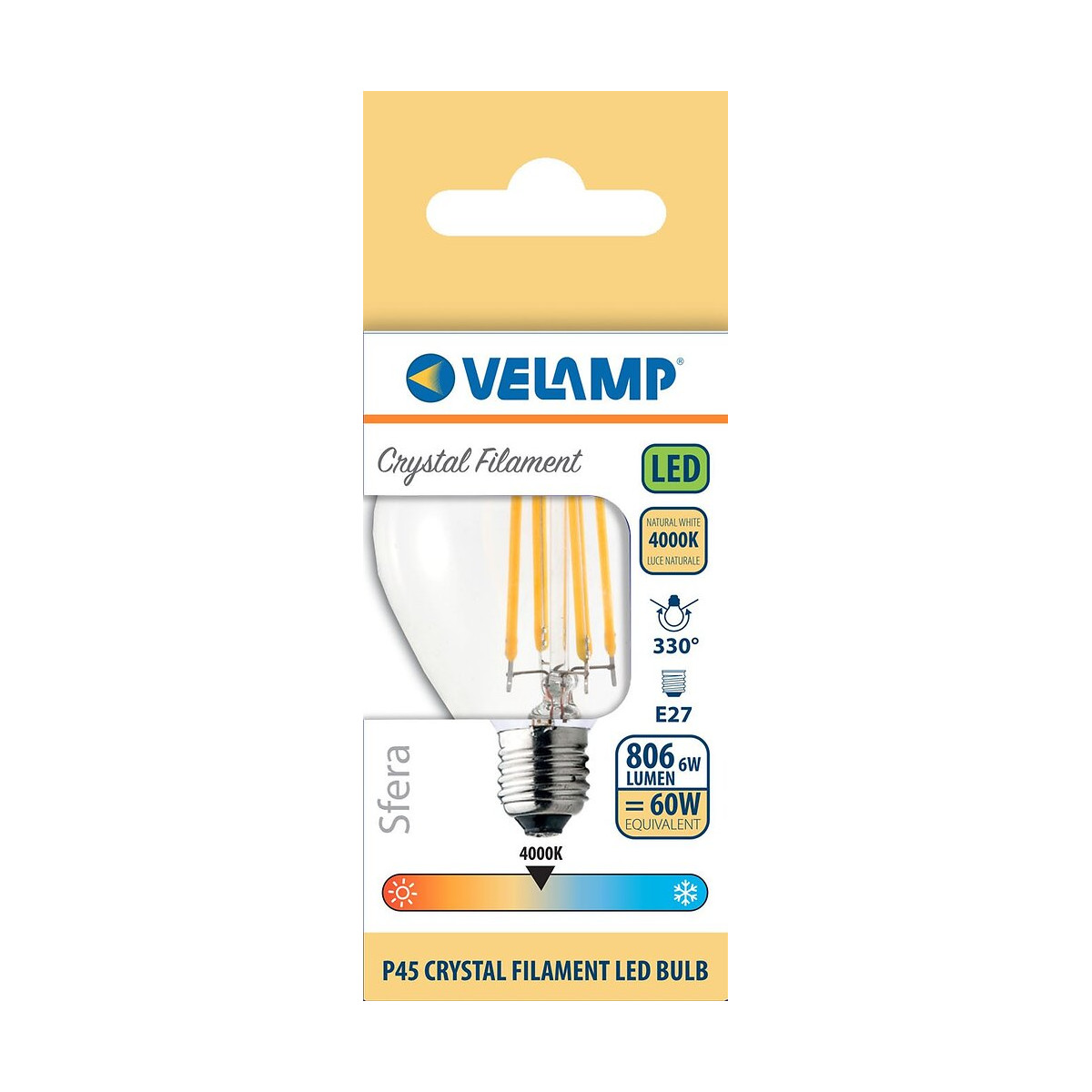Avec une durée de vie de 20000 heures (bien supérieure aux standards du marché), l'ampoule peut durer plus de 15 ans (avec une utilisation quotidienne de 3 heures). Elle vous offre 806 lumens de luminosité instantanée, sans avoir à attendre que l'ampoule se réchauffe. Diffuseur transparent qui rend la lumière très similaire aux anciennes ampoules à incandescence. La technologie 'LED filament' donne un faisceau hyper diffus à 330 °. Avec une température de couleur de 4000 Kelvin, l'ampoule fournit une lumière blanche naturelle, créant une atmosphère lumineuse dans n'importe quelle pièce. Parfaite pour toutes les pièces de la maison telles que chambre, salon, salle de bain ... et pour le bureau. Idéal pour les lampes de chevet, hotte, lampe de studio, lustres, appliques murales .... Elle consomme 6 watts d'énergie et a un coût de fonctionnement inférieur à 2,50 euros par an et permet des économies d'énergie importantes par rapport à une ampoule à incandescence. Équivalente à une ampoule traditionnelle de 60W.L'indice de rendu des couleurs élevé (CRI> 80) offre une couleur naturelle et éclatante. Cette ampoule n'est pas dimmable, non compatible avec les variateurs.