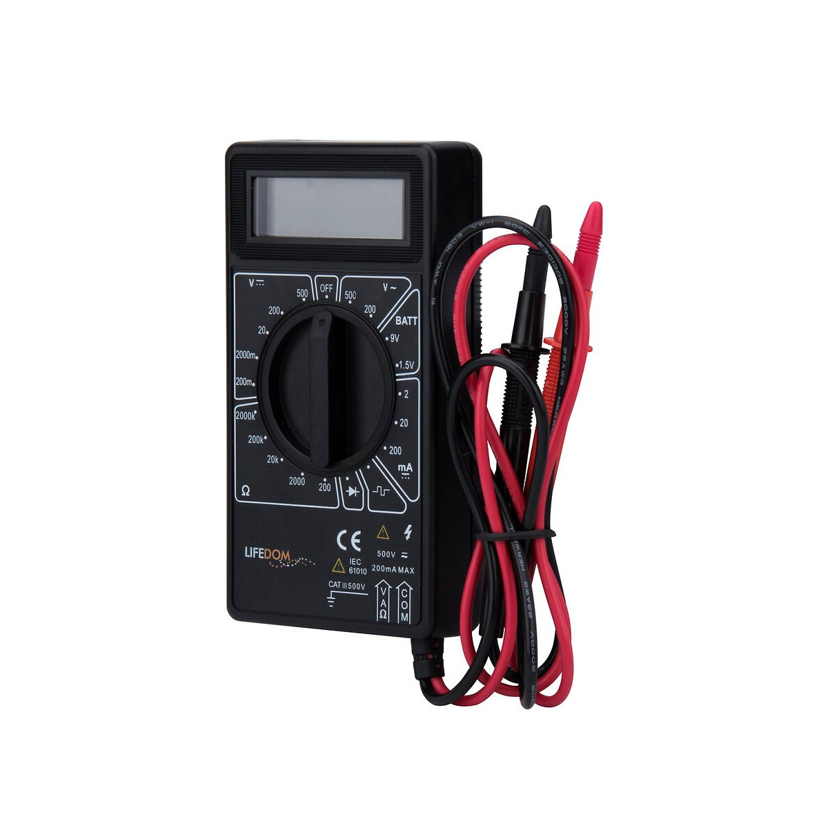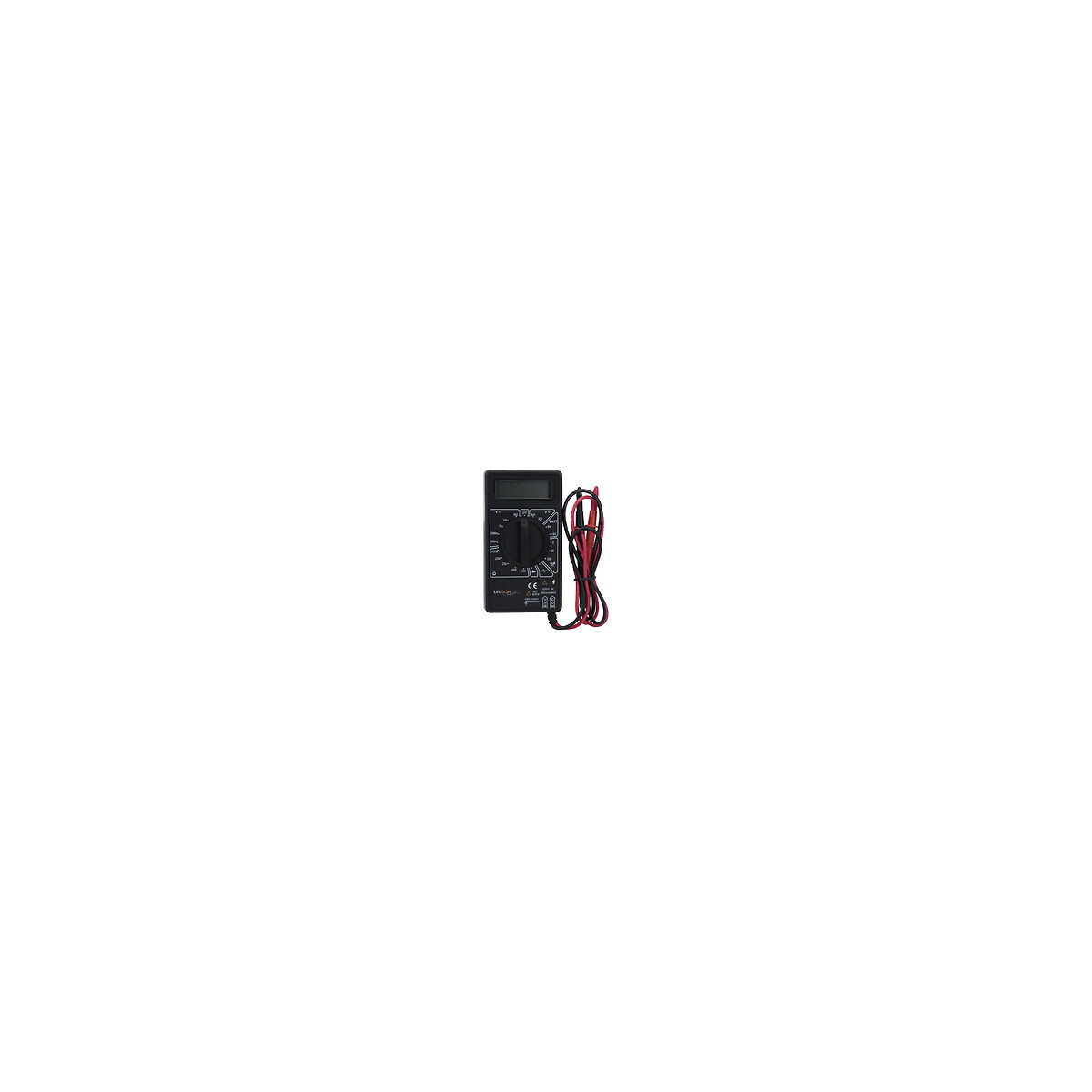 Multimètre digital - , entrée nominale : 9VDC (batterie 6F22) - ,Tension nominale : 500V AC ou DC - ,courant évalué : 200mA - ,Résistance : 2000KΩ, - ,Catégorie de mesure : CAT III - ,Fusible : 250mA/600V, - IP20
