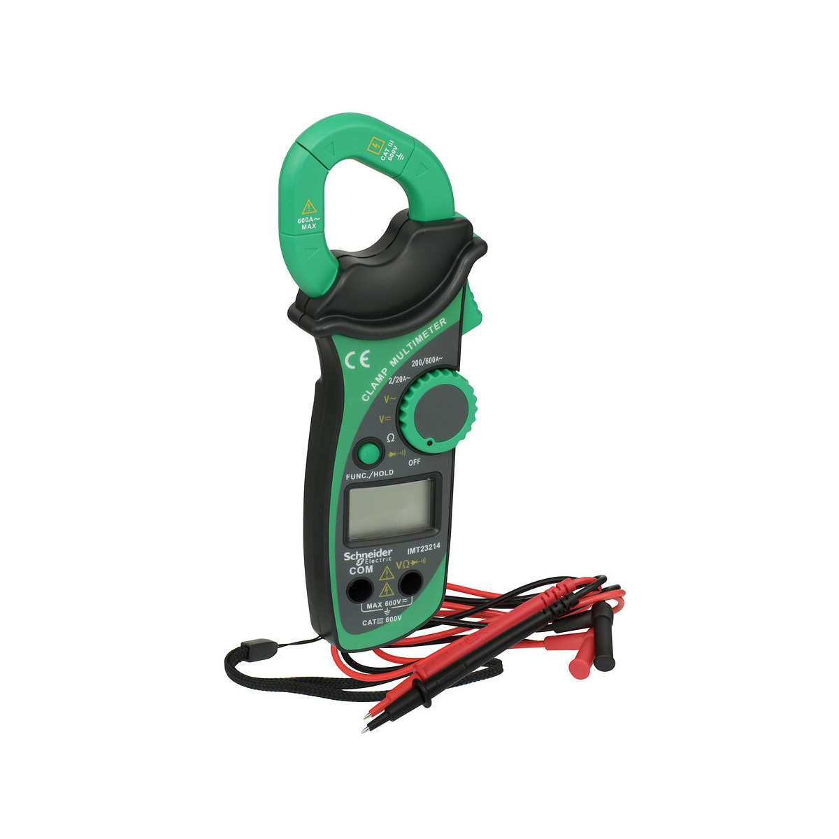 Cette pince ampèremétrique numérique compacte est conçue pour mesurer la tension continue et alternative, le courant alternatif, la résistance, la diode et la continuité. Elle est parfaite pour tout contrôle de puissance sur câble. Caractéristiques : Vert, plage de tension continue: 0,2 / 2/20/200/600 V, plage de tension alternative: 2/20/200/600 V, courant alternatif: 2/20/200/600 A, résistance: 200 ? / 2 k? / 20 k? / 200 k? / 2 M? / 20 M?, continuité: oui, moins de 30 ?, vérification des diodes: env. 1,5 V, isolation électrique: IEC 61010 Cat III, 600 V, 160 g (avec batterie).