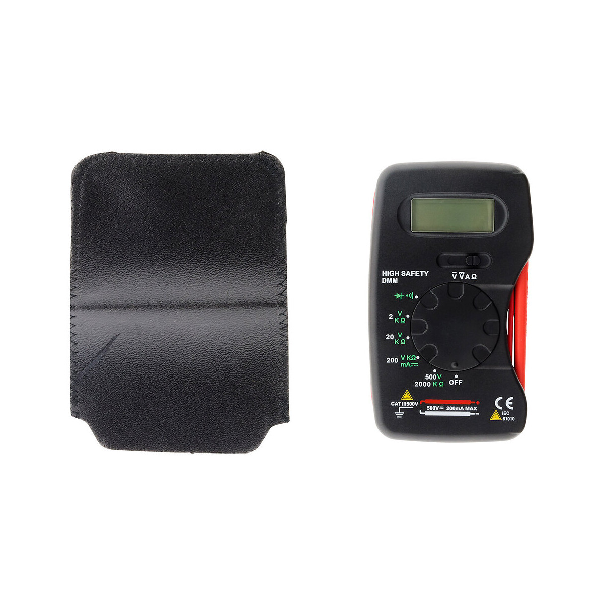 Multimètre digital de poche avec 6 fonctions. Pointes de touche intégrées. Ce multimètre dispose d'un écran LCD, d'une pile 12V 23A fournie, d'un indicateur de batterie faible. De plus, il est livré avec une housse de transport. Multimètre 600V de CAT III.