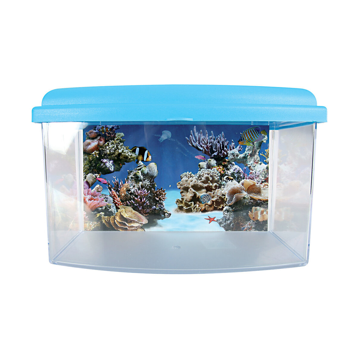 Aqua Travel Box : boîte de transport pouvant aussi servir d'aquarium pour chambre d'enfant, avec couvercle. A agrémenter de sable et décors. Aquarium de petit litrage idéal pour accueillir un petit poisson. Contenance : 4,5 L. Dimensions : Largeur 22 cm x Profondeur 14 cm x Hauteur 16 cm. Poids : 216 g.Spécifications techniques