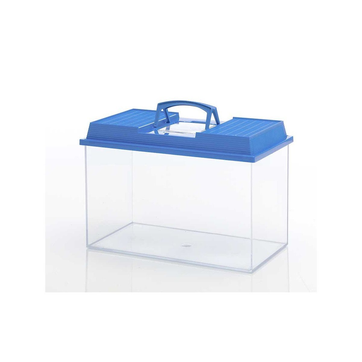 Parfait pour débuter en aquariophilie (dans une chambre d'enfant par exemple) en offrant un habitat principal à la fois accueillant pour petits animaux (poissons, grenouille, petit reptile ....) et sécure pour vos enfants. Pratique, il se transporte partout (vacances, we, déplacements divers,...) grâce à sa poignée de transport. Volume Utile : 10 litres. Dimensions : 34x20x22 cm. Disponible en coloris jaune, bleu ou vert.