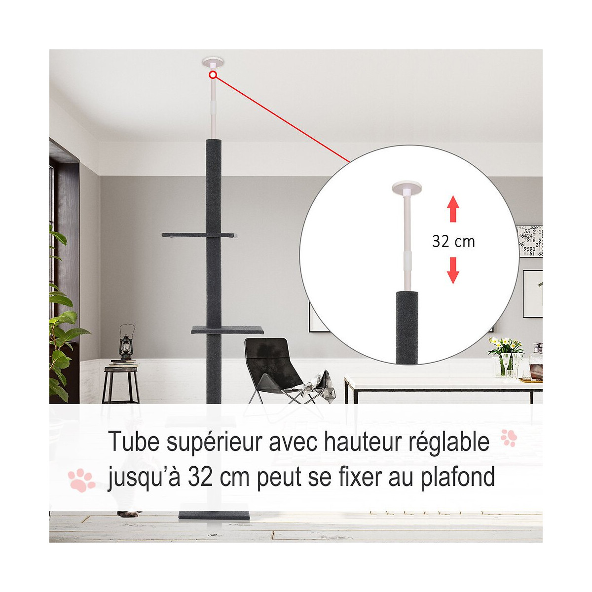 Arbre À Chat Poteau À Griffer Hauteur Réglable Dim. 43l X 27i X 228-260h Cm 4 Niveaux D'activités Gris