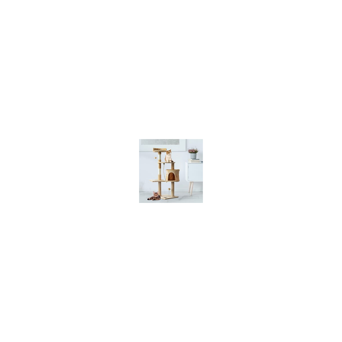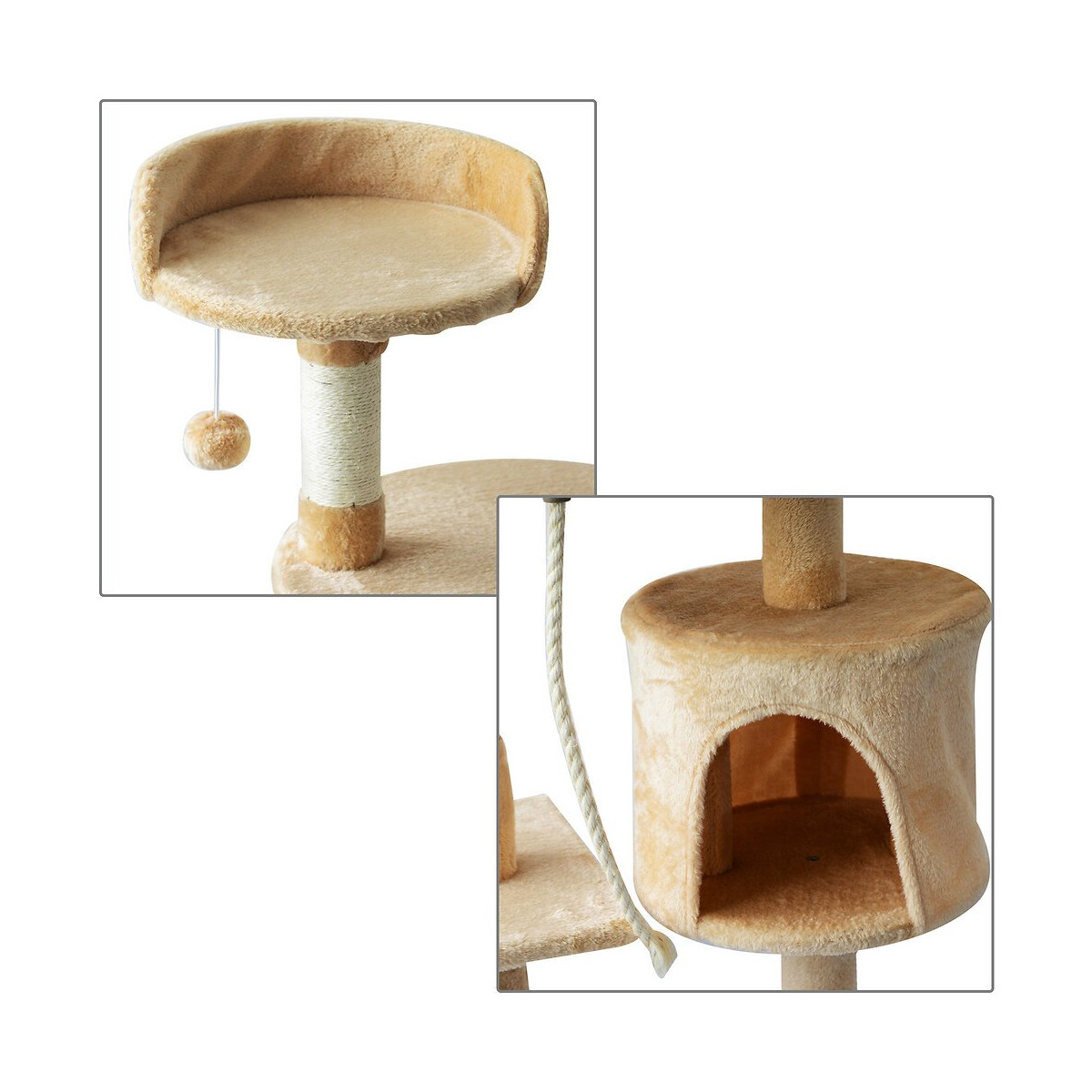 Arbre À Chats Multi-équipements Griffoirs Grattoirs Plateformes Niche Corde Jouets 40l X 40l X 114h Cm Beige
