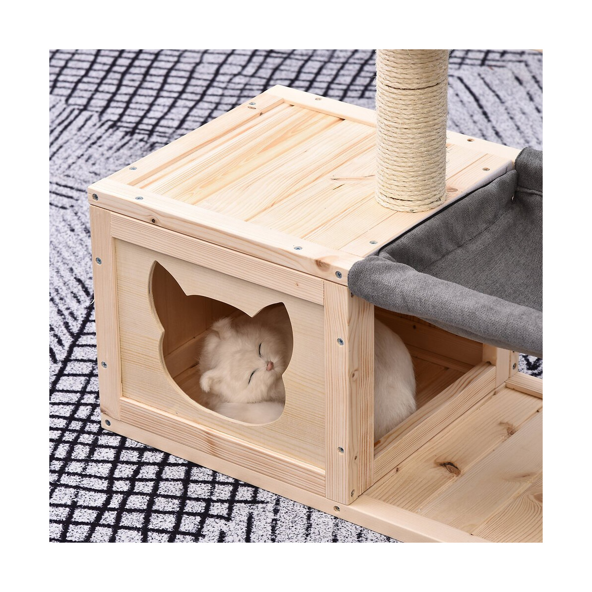 Arbre À Chat Design Contemporain Griffoir Grattoir Sisal Naturel Centre D'activités Niche Hamac Plate-formes Bois Massif Sapi