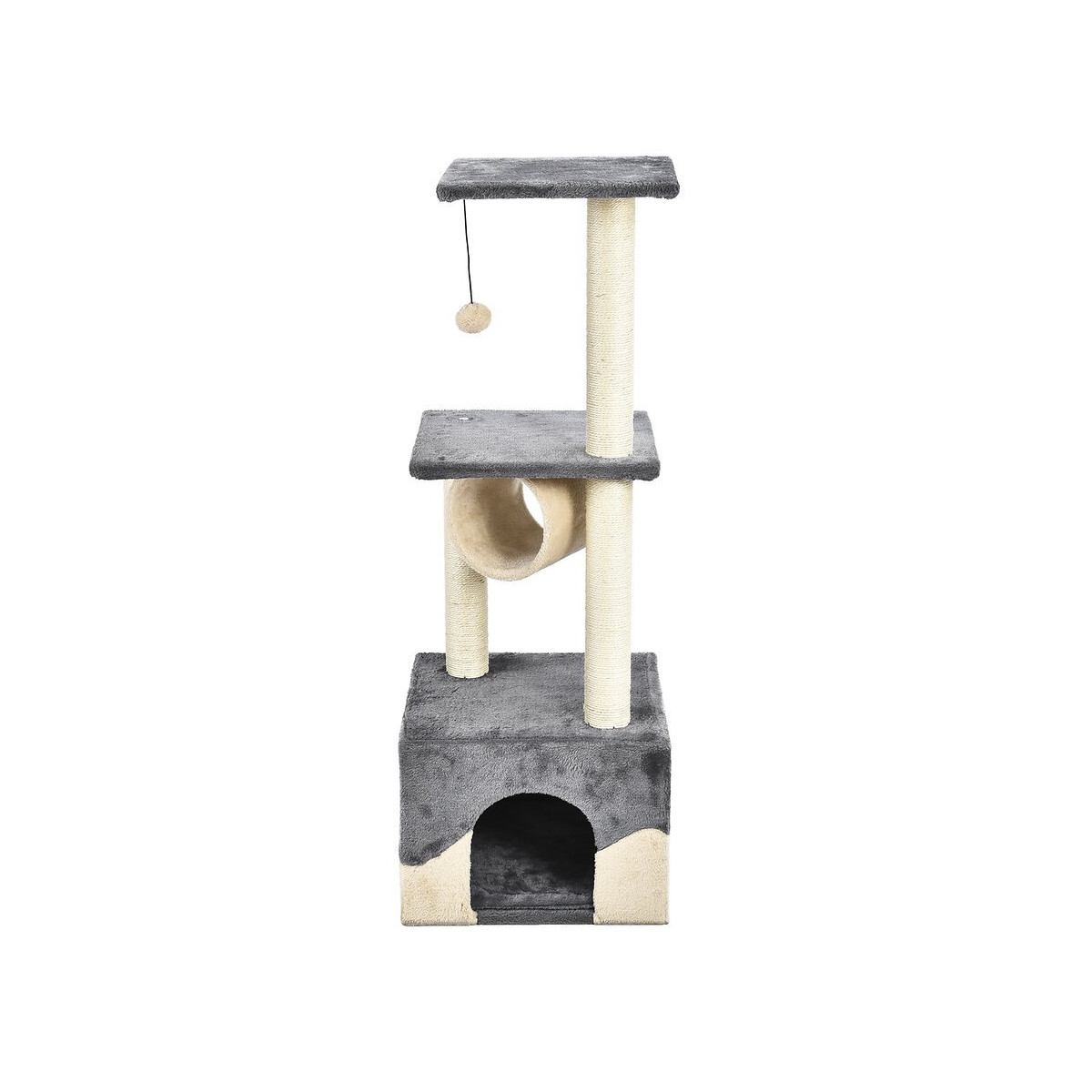 Idéal pour votre chat, composé de 2 plateformes, 1 jouet suspendu, 1 tunnel, 1 cave et 3 poteaux griffoirs