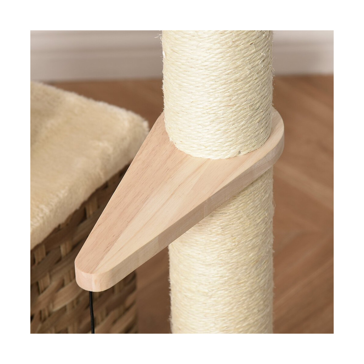Arbre À Chats Style Cosy Chic Griffoirs Sisal Naturel Niche 3 Plateformes 2 Jeux Boules Peluche Courte Résine Tressée Imitat
