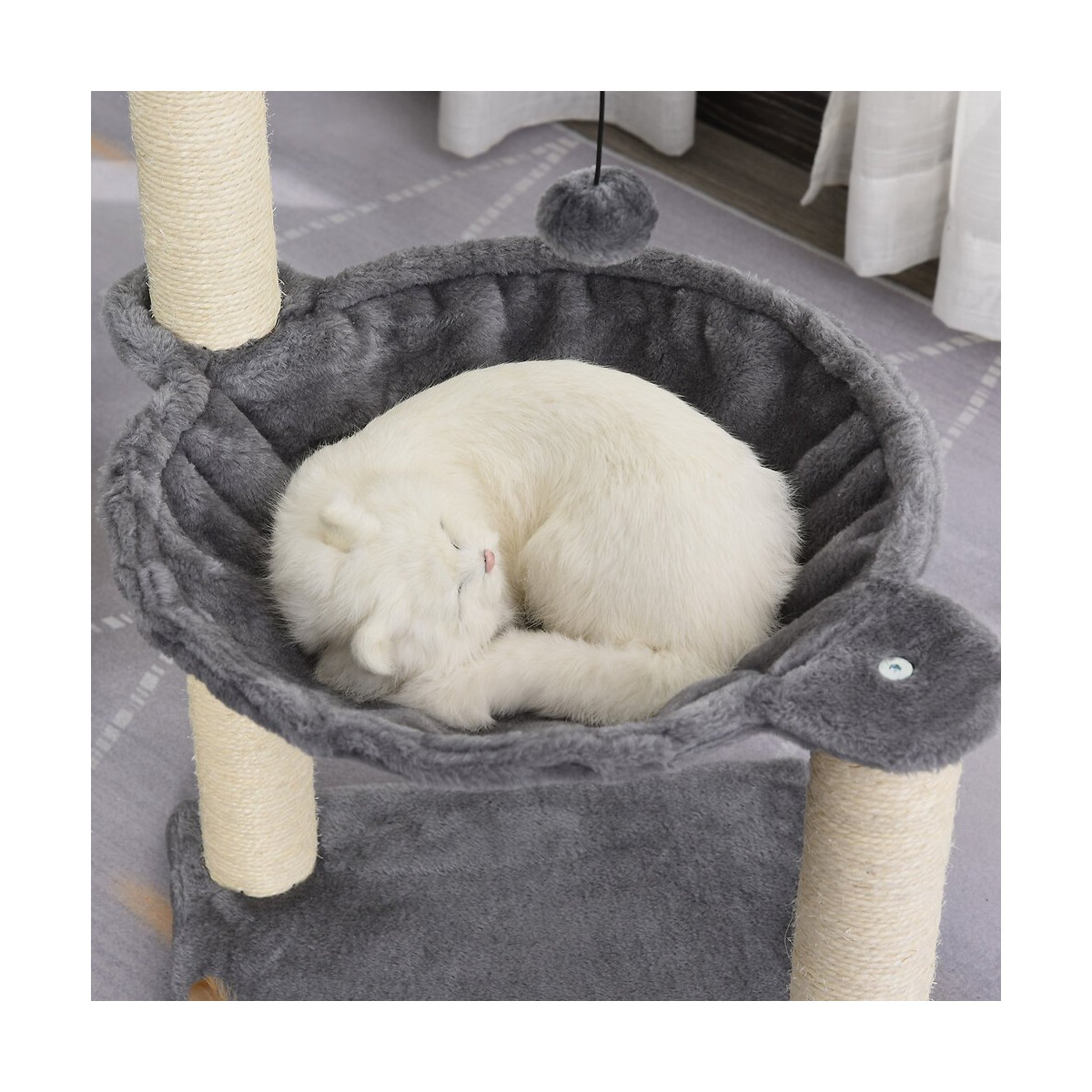 Arbre À Chat 2 Griffoirs Grattoirs Sisal Naturel Hamac Jeu 2 Boules Suspendues Peluche Haute Densité 400 G/m² Gris