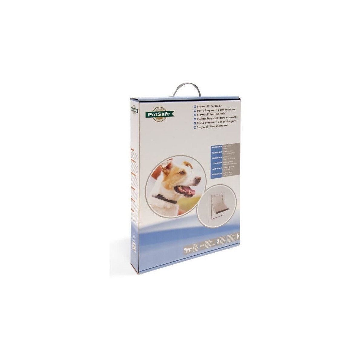 Porte Staywell® dotée d'un cadre robuste en aluminium - Porte 2 voies : ouverte ou fermée, permettant a l'animal d'aller et venir a son gré entre la maison et l'extérieur - Porte a battant souple muni d'un systeme aimanté pour maintenir le battant en cas de vent - Coloris : blanc - Pour chat ou chien jusqu'a 45 kg.Spécifications techniques