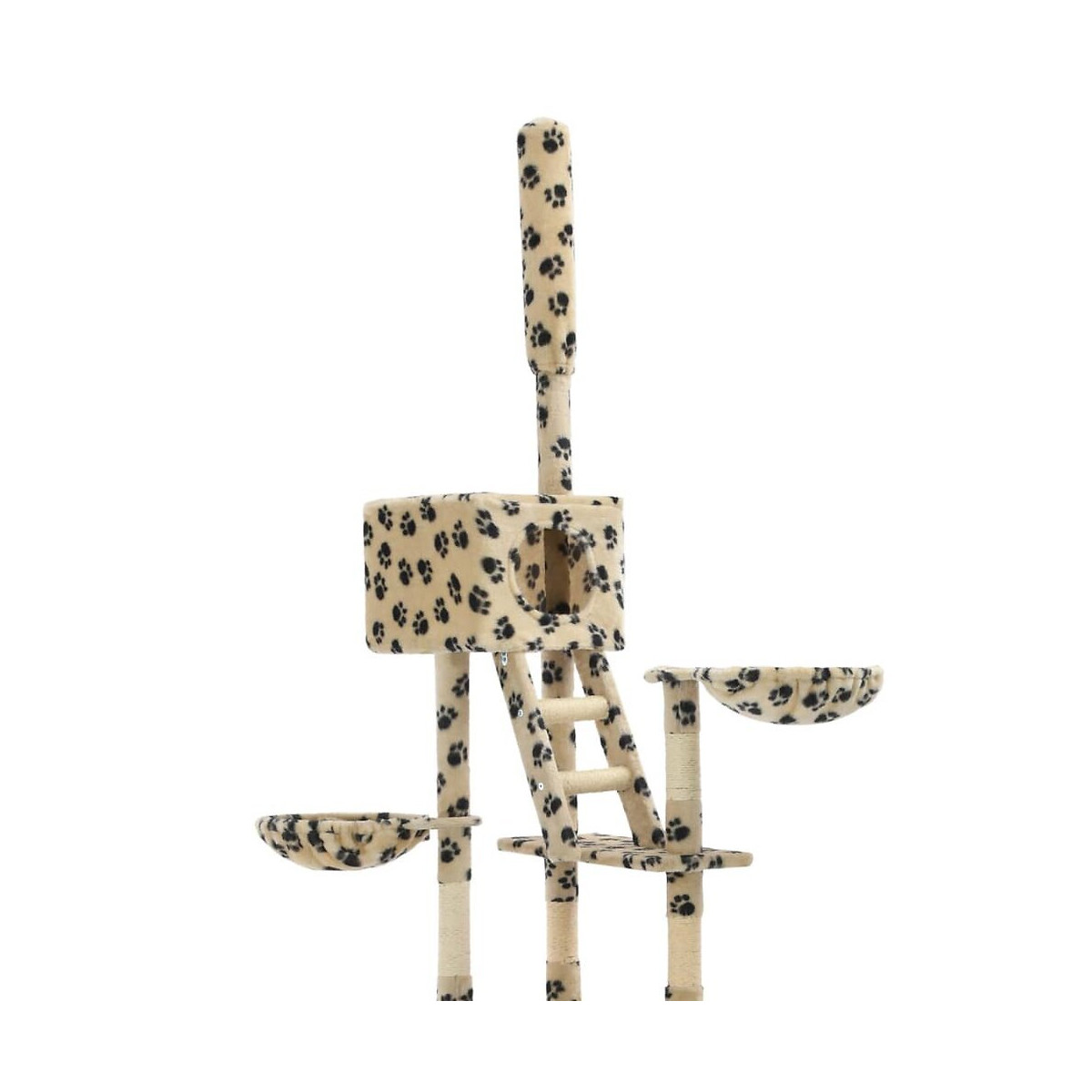 Arbre À Chat Avec Griffoir En Sisal 230-260cm Beige Motif Patte - Accessoires Pour Chats - Meubles Pour Chats - Beige - Beige