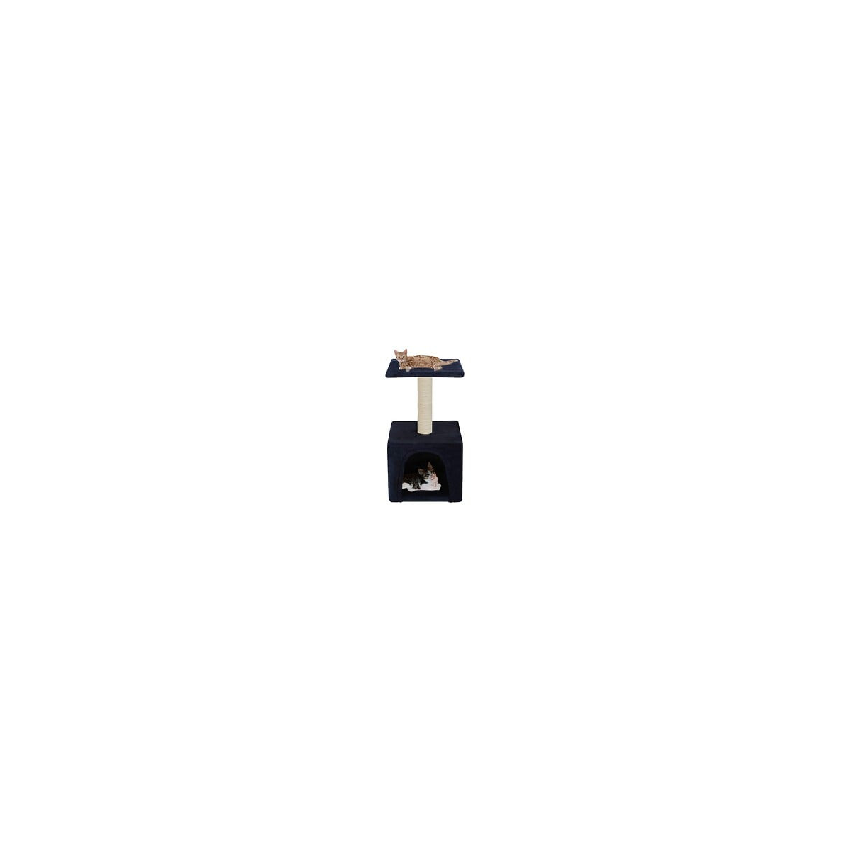 Avec cet arbre de chat de qualité supérieure, vos chats peuvent gratter, percher, cacher, grimper et se détendre à leur guise. Il s'accorde avec n'importe quel décor. L'arbre à gratter pour chats donnera également à vos chats la possibilité de s'étirer et de faire de l'exercice, surtout durant les mois froids de l'hiver, lorsqu'ils sont confinés à l'intérieur. La surface en peluche et moquettée est très confortable et le grattoir est enveloppé en corde de sisal. Il a aussi une maison confortable et une plateforme pour garder votre chat diverti. La base est robuste et stable. Il convient à plusieurs chats. Couleur : Bleu foncé Matériau : cadre en panneau de particules + peluche douce + corde en sisal Dimensions : 30 x 30 x 55 cm (L x l x H) Taille de la base : 30 x 30 cm (L x l) Diamètre du poteau : 5 cm Avec une maison confortable et une plateforme Matériel: Polyester: 100%Spécifications techniques