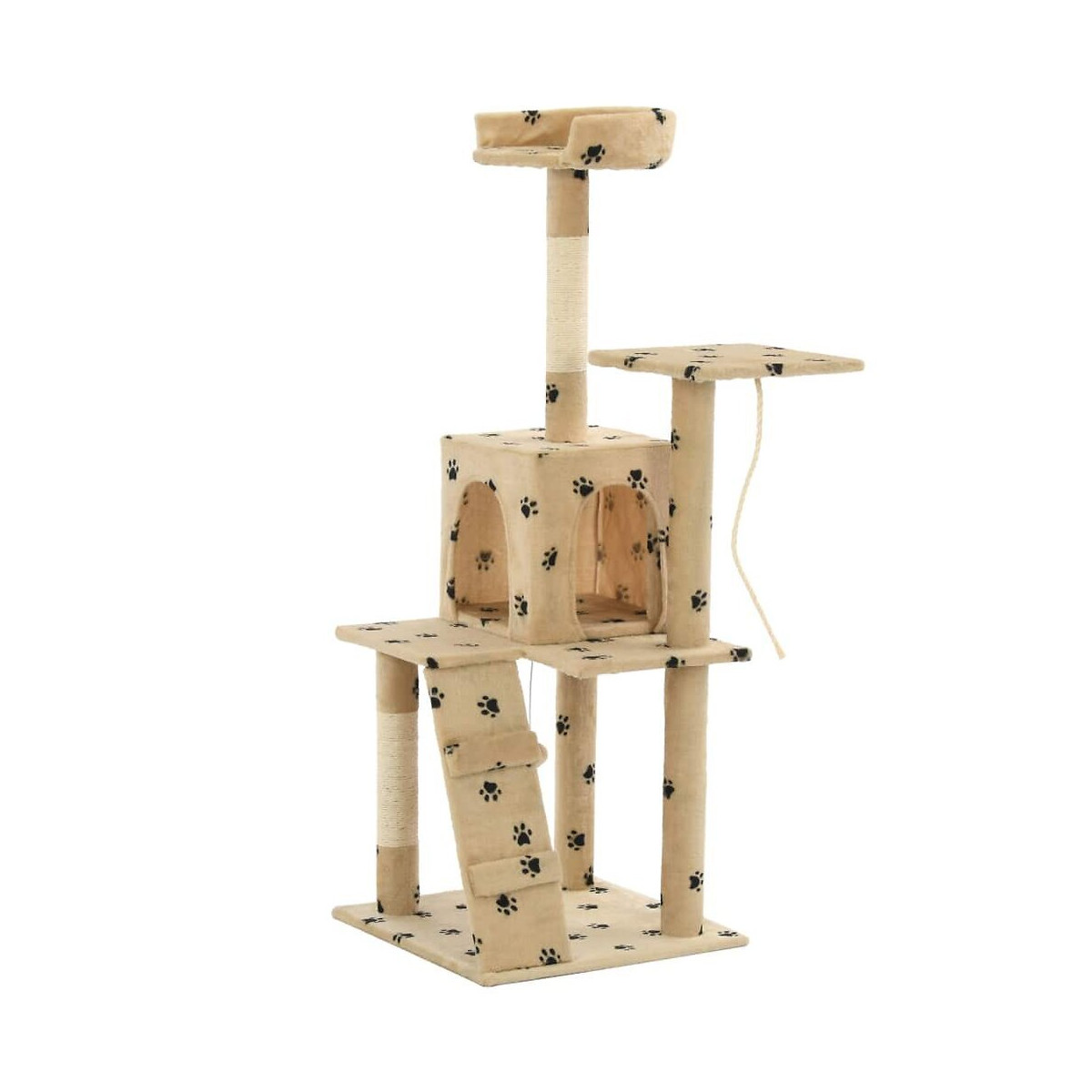 Arbre À Chat Avec Griffoirs En Sisal 120 Cm Beige Motif Pattes - Accessoires Pour Chats - Meubles Pour Chats - Beige - Beige
