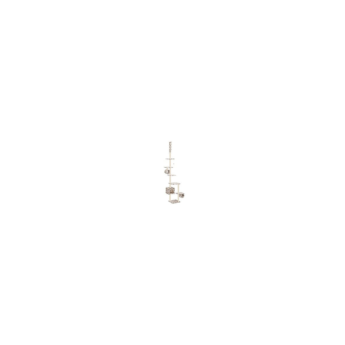 Offrez à vos amis félins un avant-goût du luxe avec notre arbre à chat rempli de fonctionnalités ! Ce centre de jeu à plusieurs étages, doté d'un cadre solide recouvert d'une peluche douce et confortable, est la retraite idéale où vos chats puissent se gratter, grimper, se percher, se cacher et se reposer. Vos amis félins peuvent aiguiser leurs griffes sur les griffoirs enroulés dans des cordes en sisal, qui fournissent une bonne pratique pour leurs instincts à gratter. Ils aimeront également courir après l'autre tout en sautant de haut en bas dans ce centre de jeu amusant. Il y a un jouet suspendu qui va éveiller vos chats curieux. Quand ils s'amusent suffisamment, vos petits amis adoreront se reposer sur les plates-formes supérieures, où ils auront une meilleure vue. Ils peuvent également se cacher dans la maison confortable ou dans les tunnels pour faire une sieste. Avec toutes ces fonctionnalités amusantes, cet arbre à chat deviendra le lieu de divertissement préféré de vos amis à fourrure ! Couleur: Beige avec empreinte de patte Matériau : aggloméré + carton + tissu en peluche + corde de sisal Dimensions globales : 70 x 58 x 260 cm (L x l x H) Dimensions de la maison : 30 x 30 x 25 cm (L x l x H) Dimensions du tunnel : 17 x 20 cm (diamètre x L) Taille de la base : 40 x 40 cm (L x l) Avec une maison, un jouet suspendu, deux tunnels, des grattoirs et des plates-formes Matériel: Polyester: 100%Spécifications techniques