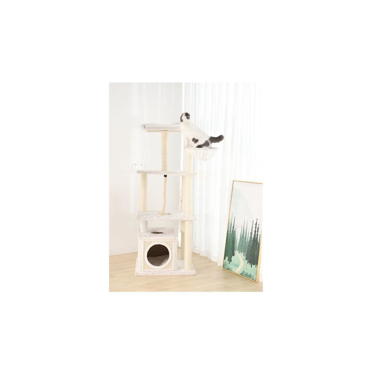 Grand Arbre a chat avec niche - 108 x 60 x H.178 cm - BlancSpécifications techniques