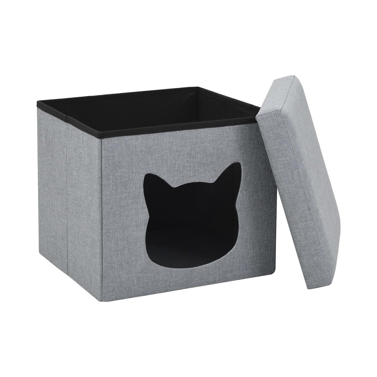 Lit Pliable Pour Chats Faux Lin 37 X 33 X 33 Cm Gris - Accessoires Pour Chats - Paniers Pour Chats - Gris - Gris