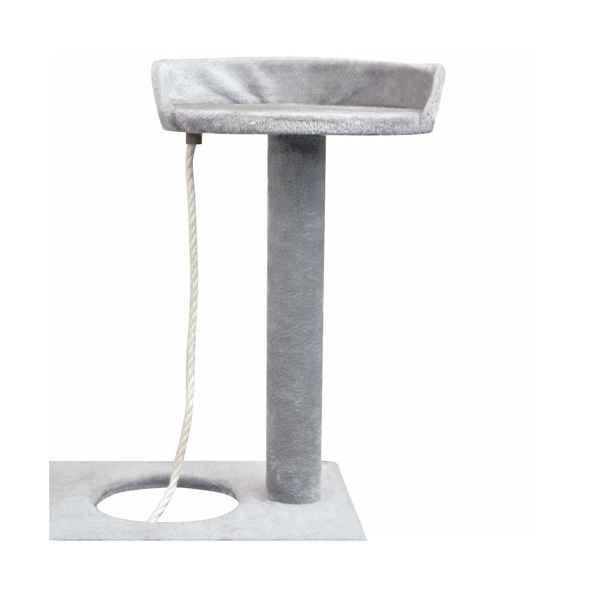 Offrez à vos amis félins un avant-goût du luxe avec notre arbre à chat rempli de fonctionnalités ! Ce centre de jeu à plusieurs étages, doté d'un cadre solide recouvert d'une peluche douce et confortable, est la retraite idéale où vos chats puissent se gratter, grimper, se percher, se cacher et se reposer. Vos amis félins peuvent aiguiser leurs griffes sur les griffoirs enroulés dans des cordes en sisal, qui fournit une bonne pratique pour leurs instincts à gratter. Ils aimeront également courir après l'autre tout en sautant de haut en bas dans ce centre de jeu amusant. Au-dessous de la plate-forme supérieure, il y a un jouet de corde qui engagera vos chats curieux. Quand ils s'amusent suffisamment, vos petits amis adoreront se reposer sur les plates-formes supérieures, où ils auront une meilleure vue. Ils peuvent également se cacher dans la maison confortable pour faire une sieste ou se détendre sur le hamac douillet. Avec toutes ces fonctionnalités amusantes, cet arbre à chat deviendra le lieu de prédilection de vos amis à fourrure ! Couleur : Gris Matériaux: structure en bois + corde sisal + peluche douce Dimensions totales : 97 x 40 x 150 cm (L x I x H) Dimensions de la maison : 30 x 25 cm (Diamètre x H) Diamètre du hamac : 30 cm Taille de la base : 60 x 35 cm (L x l) Avec échelle, maison, hamac, griffoir et plate-forme Matériel: Polyester: 100%Spécifications techniques